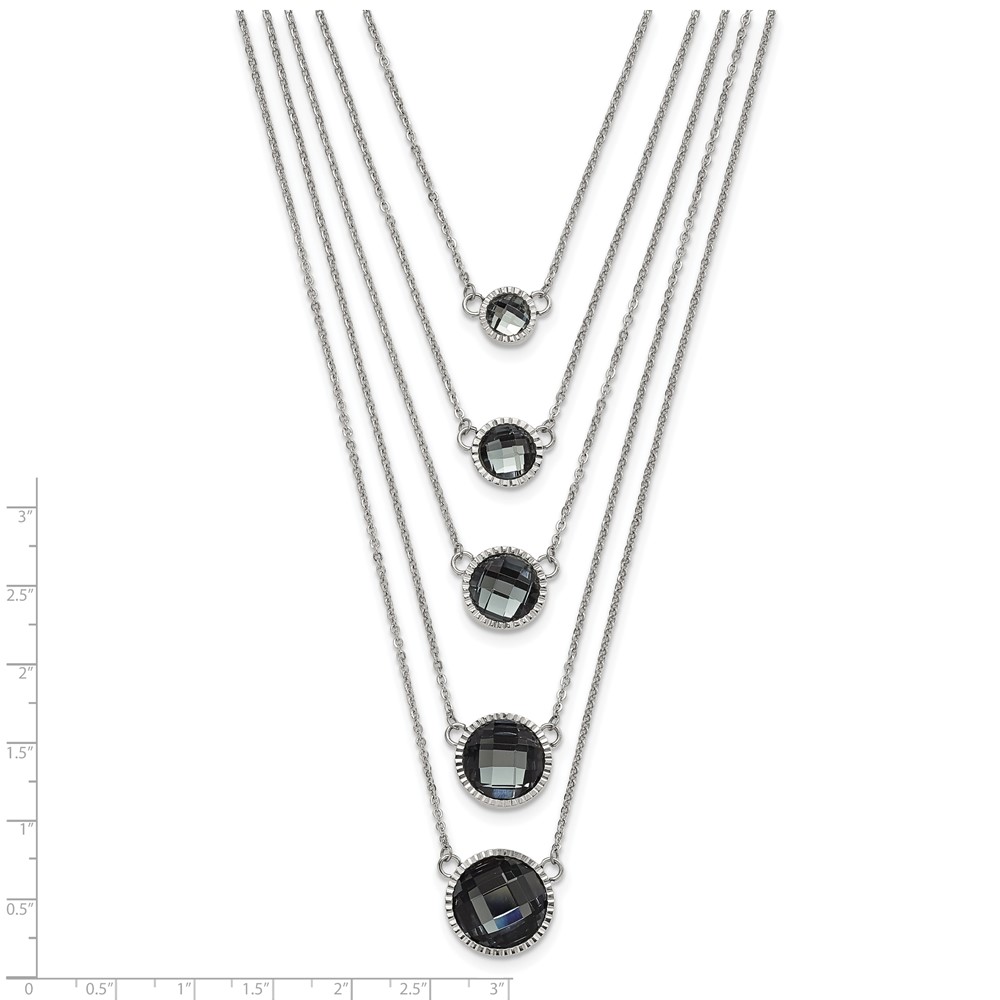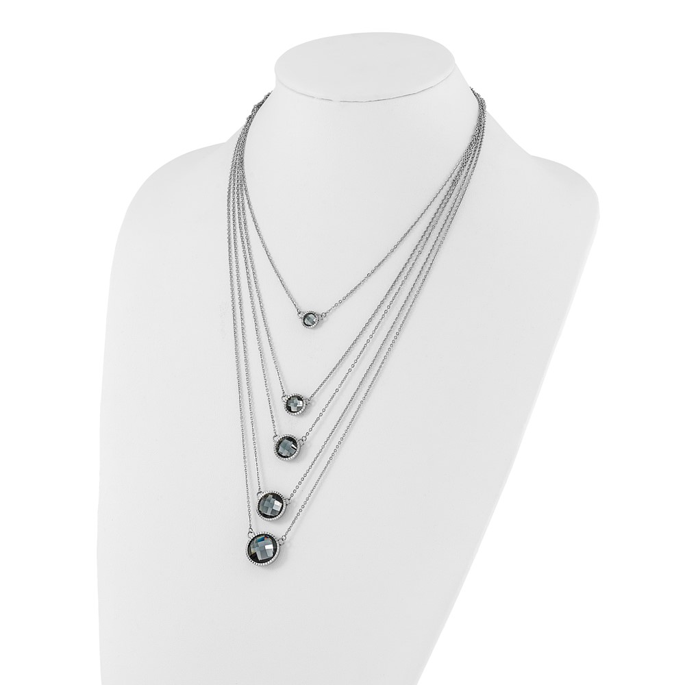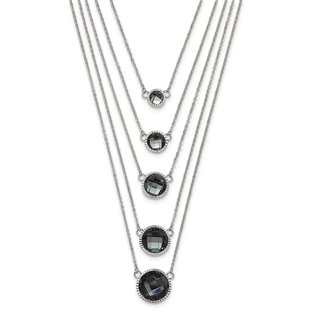 Stainless Steel Polished Multistrand Grey Glass w/ 2in ext. Necklace
