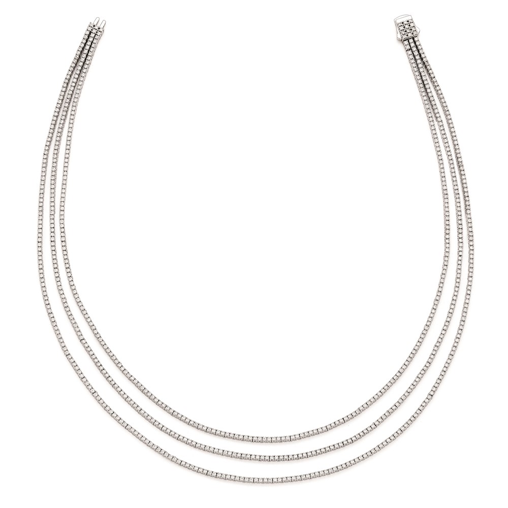 Sterling Shimmer Sterling Silver Rhodium-plated 16 inch 732 Stone CZ 3 Strand Layer Necklace