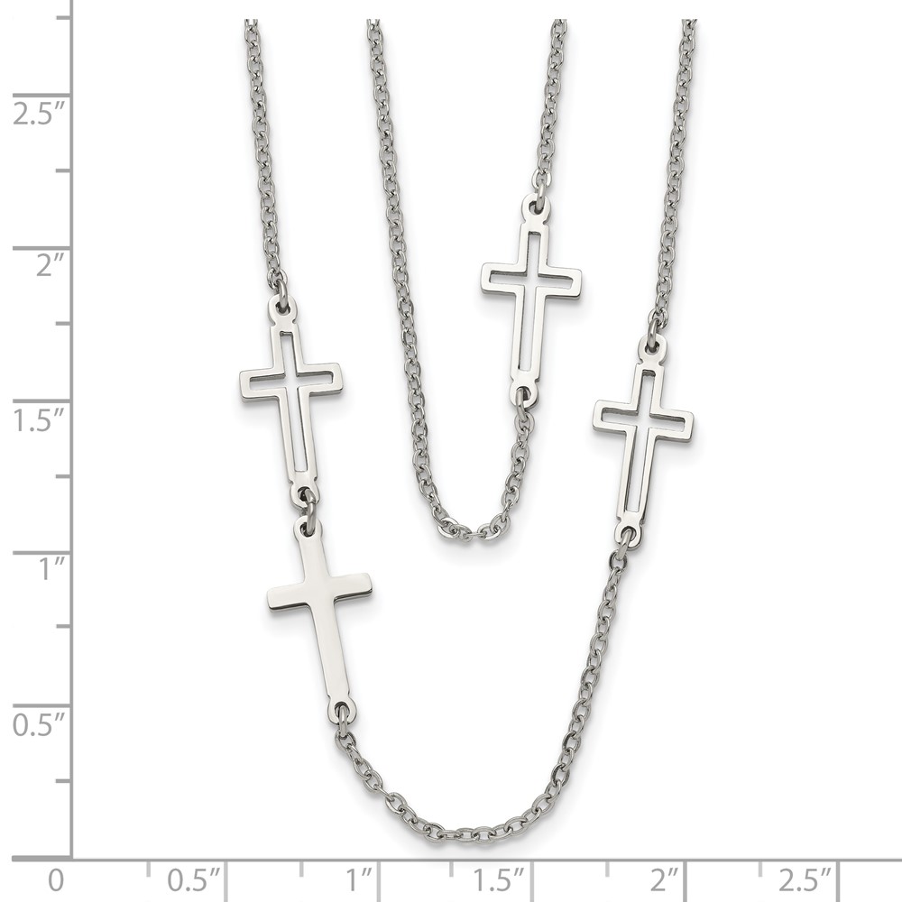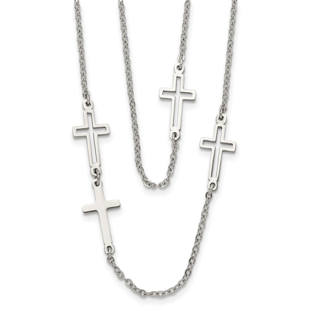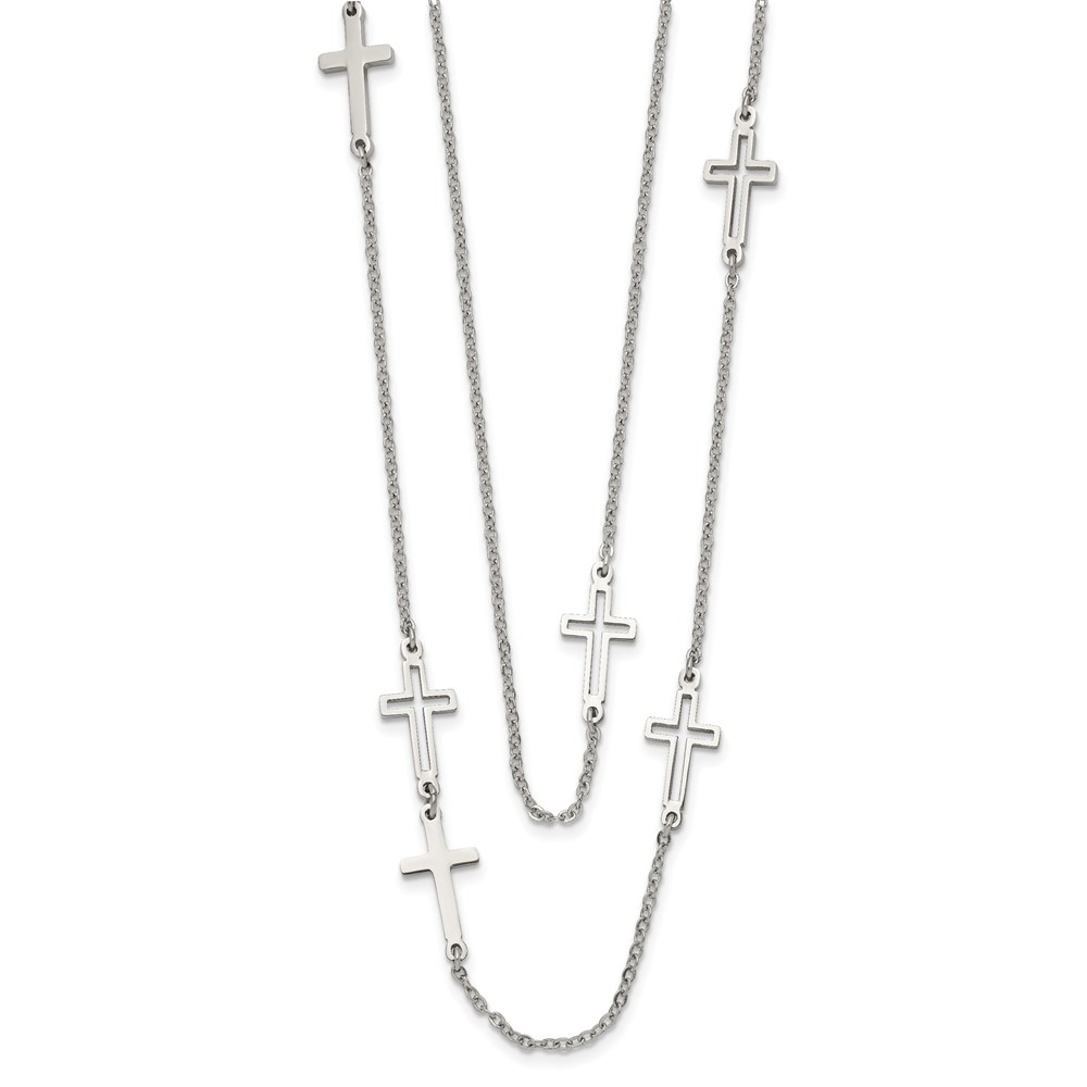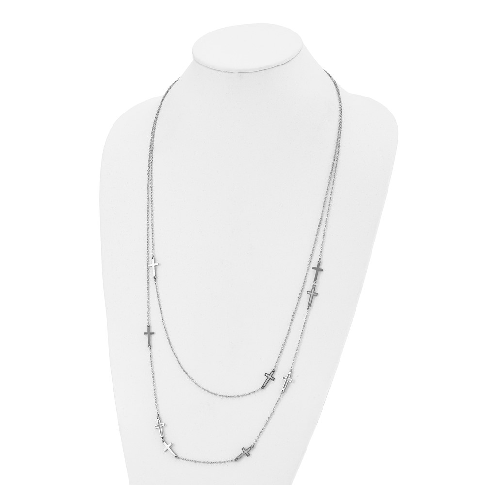Stainless Steel Two Strand Cross 30in Necklace