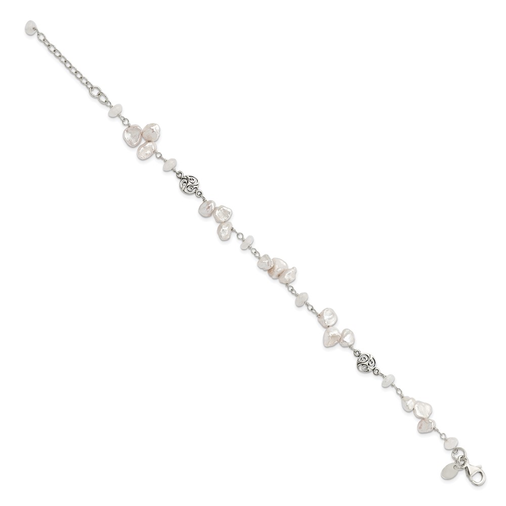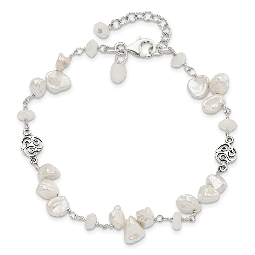 Sterling Silver FWC Keshi Pearl w/Moonstone 1in Ext. Fancy Bracelet