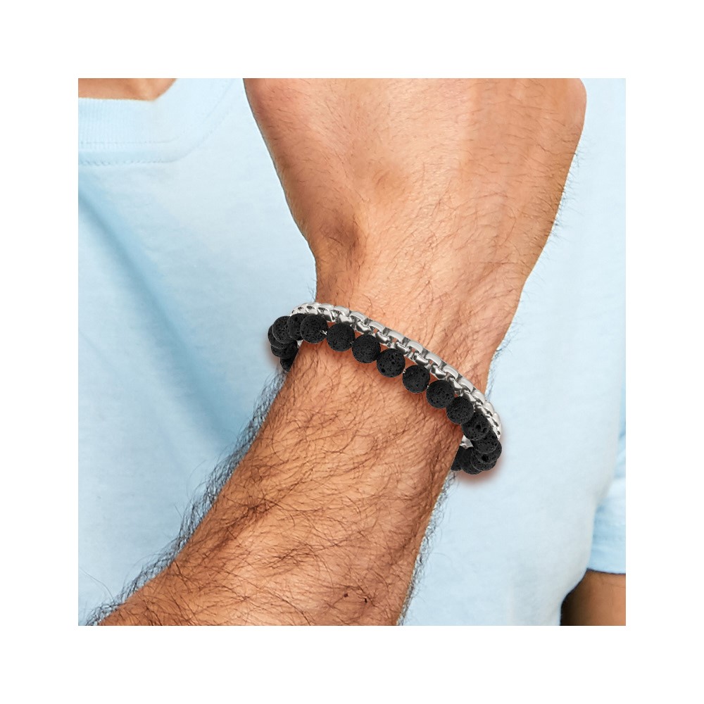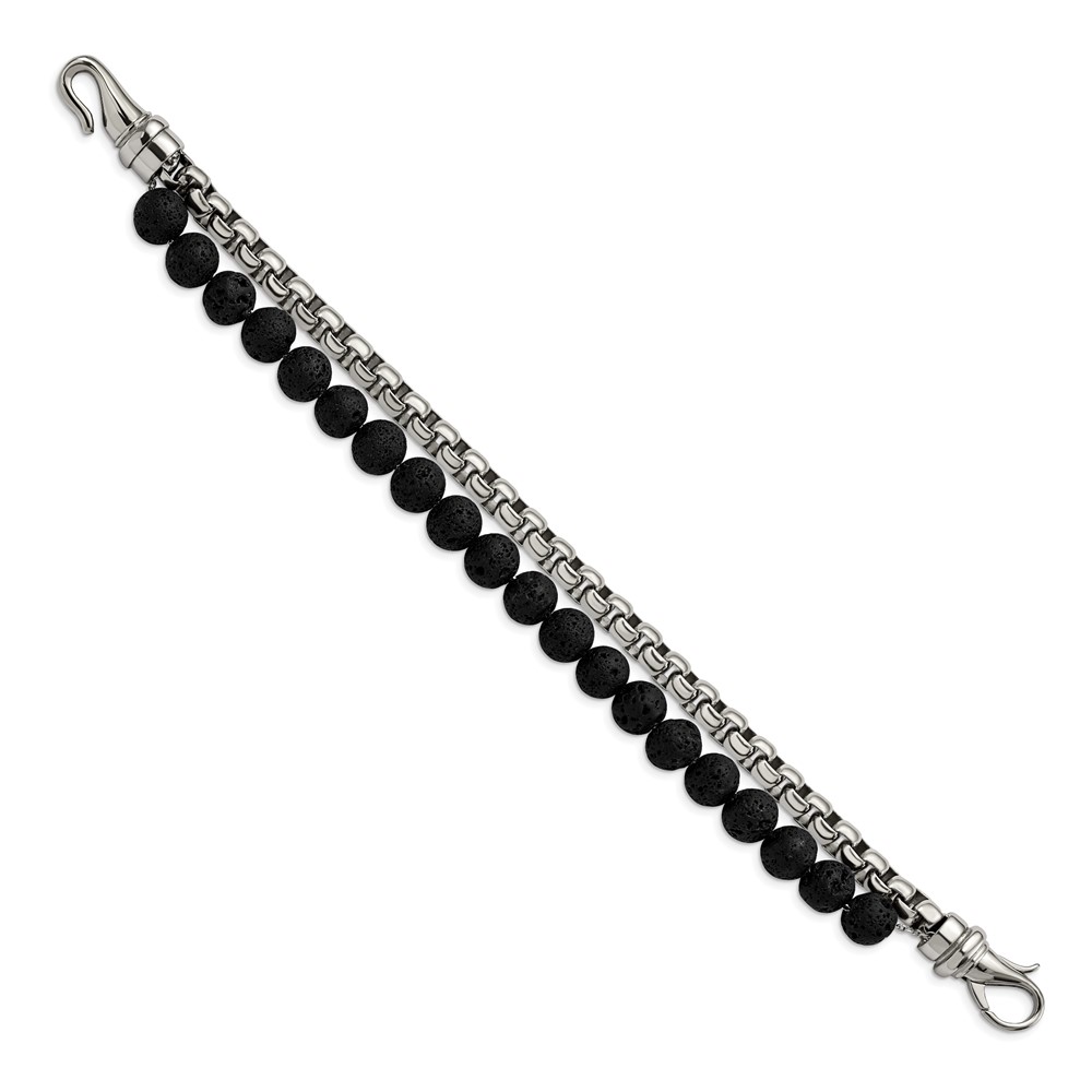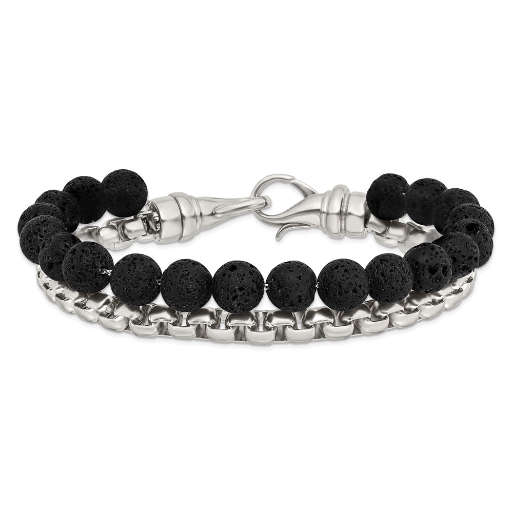 Stainless Steel Polished Box Chain & Lava Stone 2 Stand 8.5in Bracelet