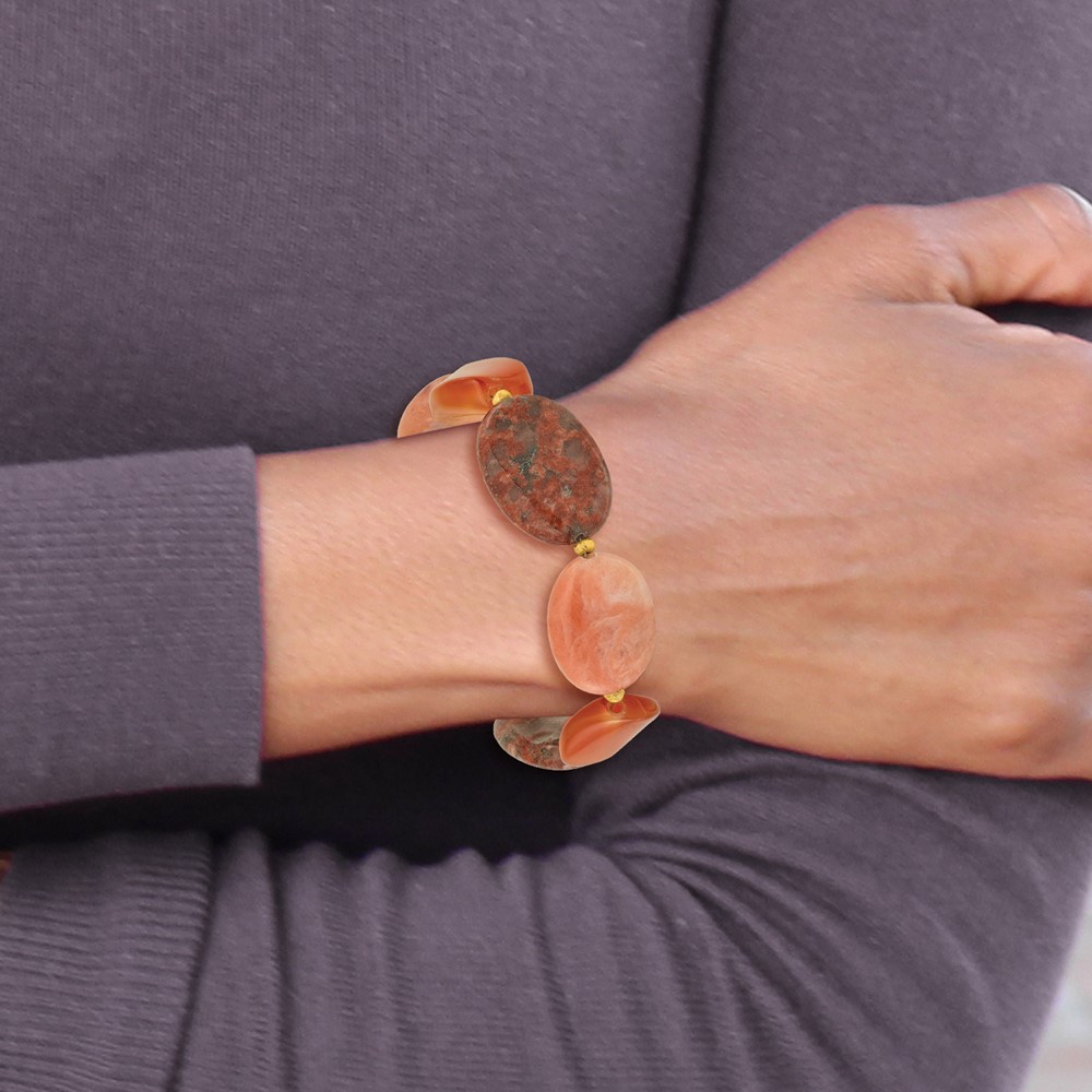 Sterling Silver Gold-plated Aventurine/Carnelian/Jasper 1in ext Bracelet