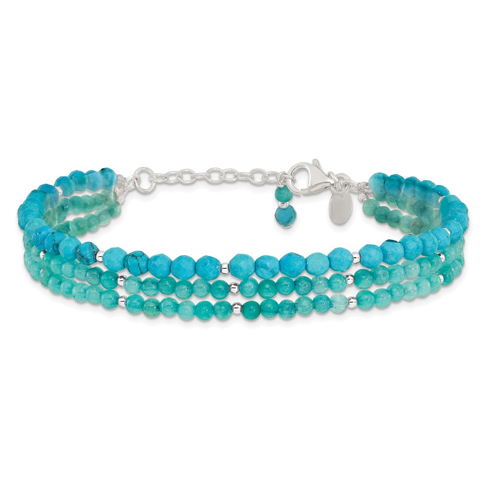 Sterling Silver Recon Magnesite/Indicolite Quartz 1in ext Bracelet