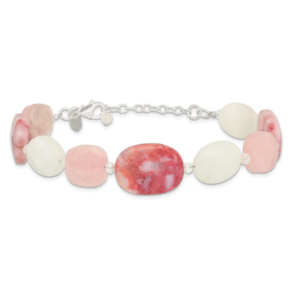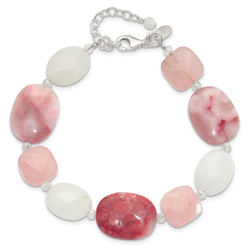 Sterling Silver Pink Agate/Quartz, Jade, Crystal w/1in ext Bracelet