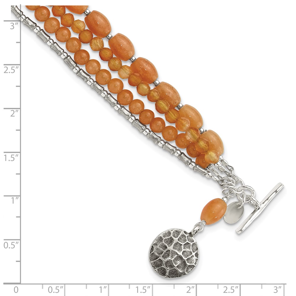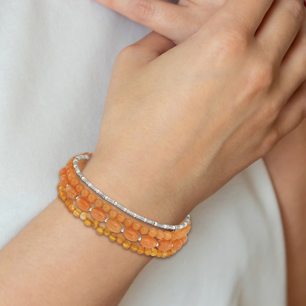 Sterling Silver Oxidized Aventurine/Carnelian 4-Strand 8in Bracelet