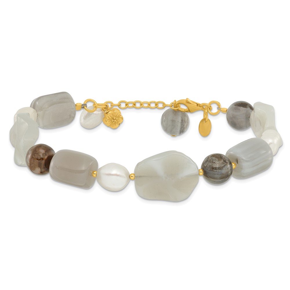 Sterling Silver Gold-plated FWC Pearl/Agate/Sardonyx 1in ext Bracelet