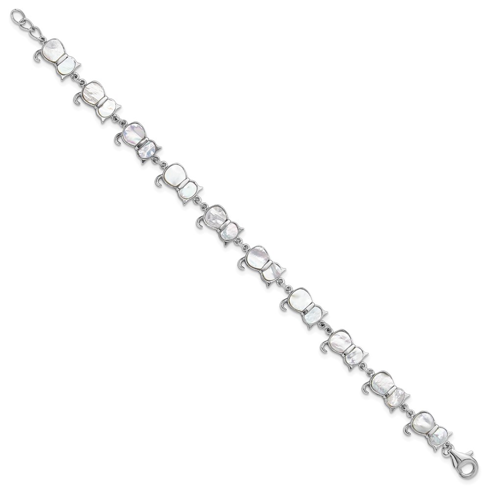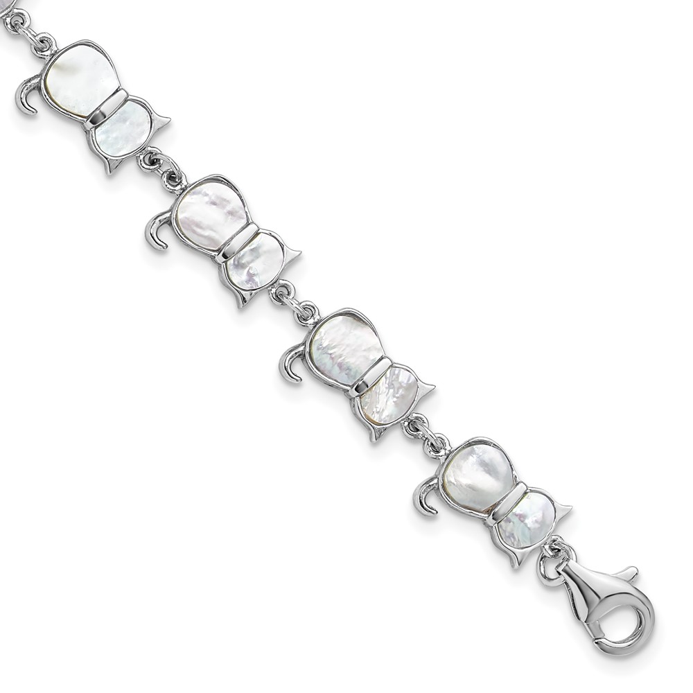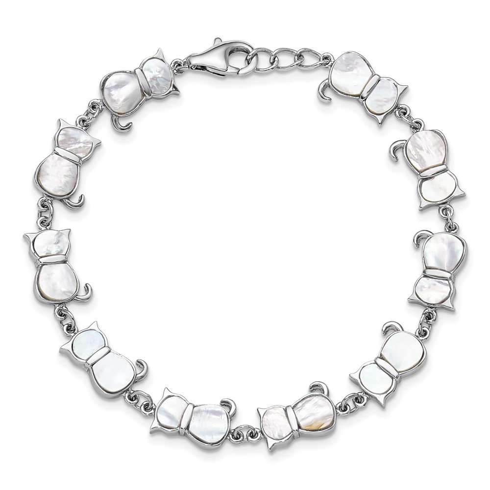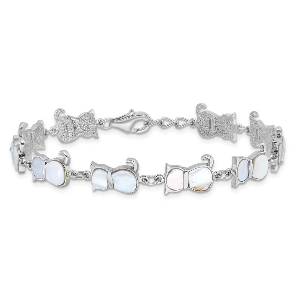 Sterling Silver Rhodium-plated Mother of Pearl Cat Link Bracelet
