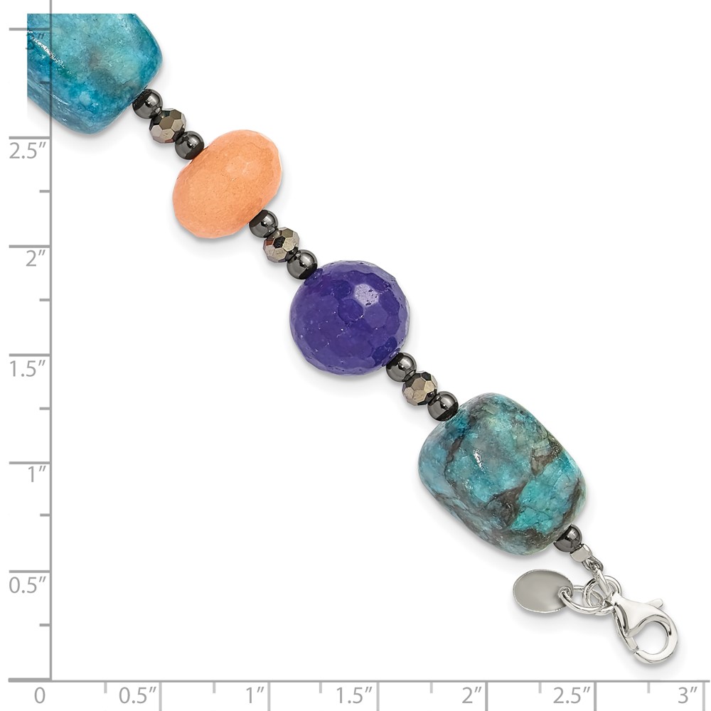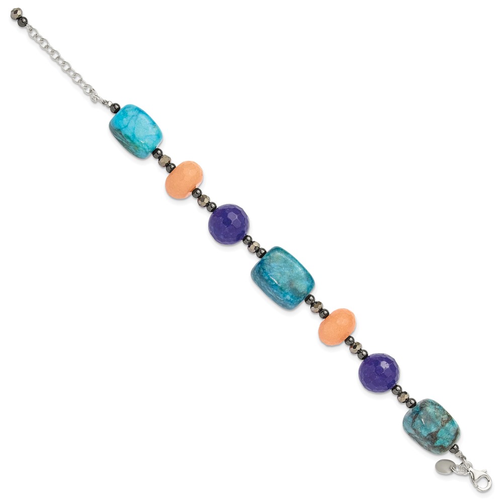 Sterling Silver Hematite,Agate,Jasper,Quartz,Crystal 1in ext Bracelet