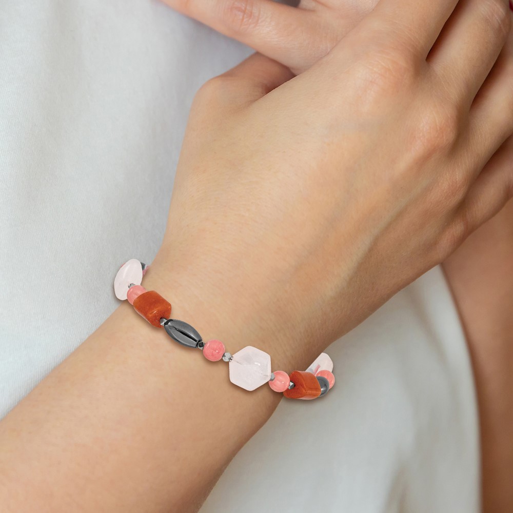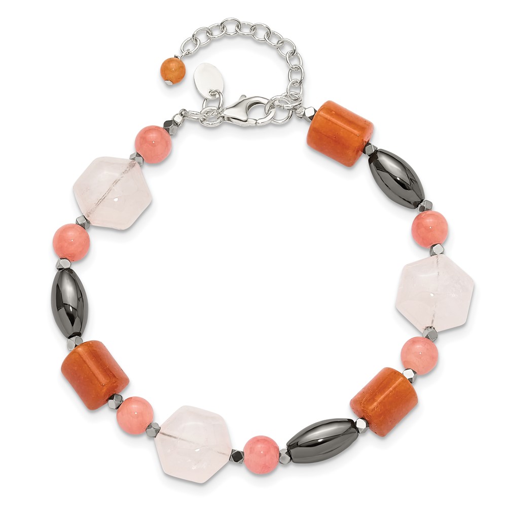 Sterling Silver Hematite/Multi Stone 7.5in w/1in ext Bracelet
