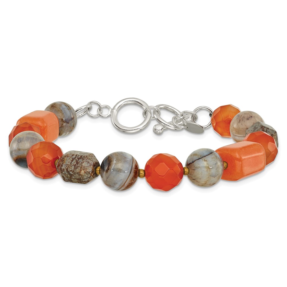 Sterling Silver Hematite,Agate,Jasper,Quartz,Crystal 1in ext Bracelet