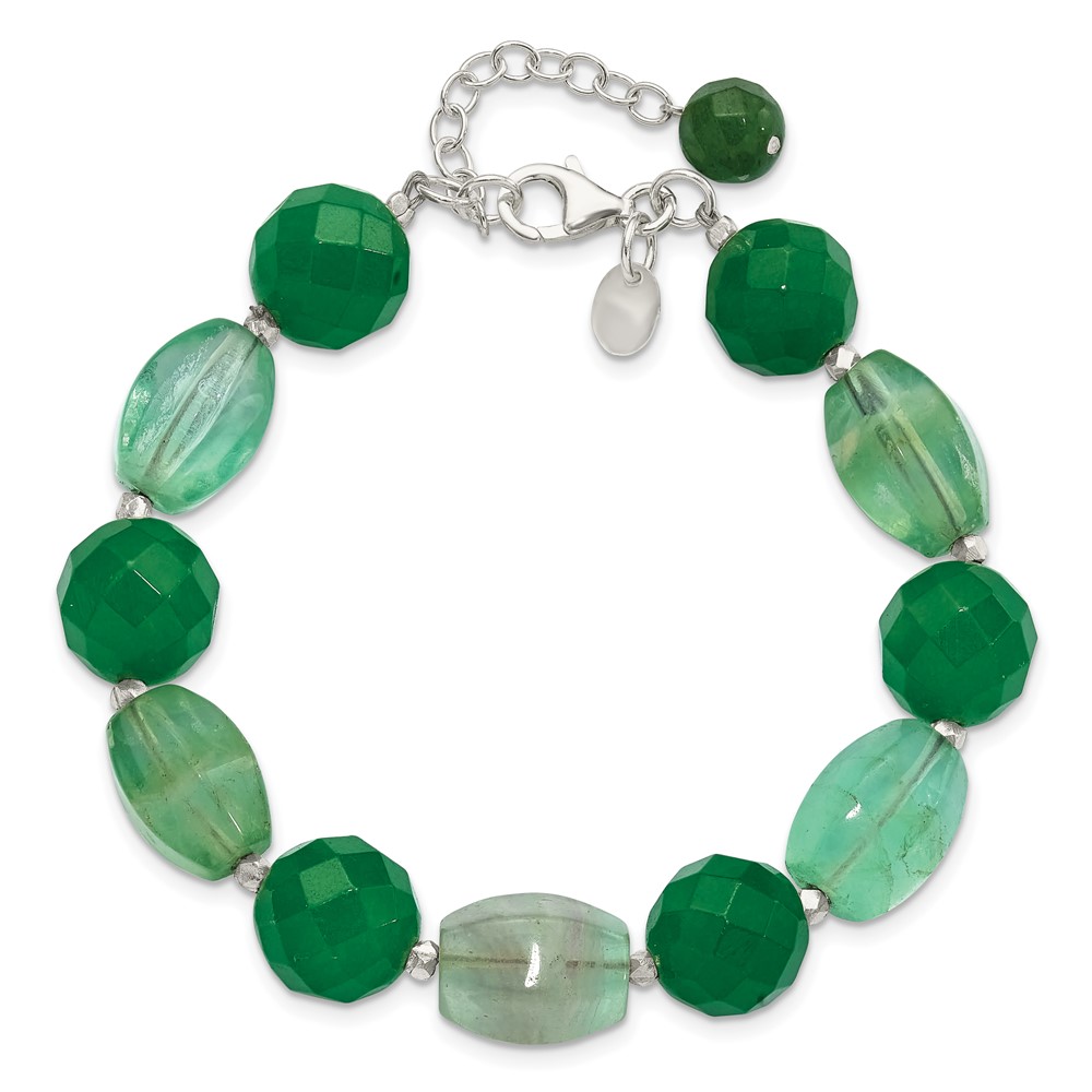 Sterling Silver Aventurine and Fluorite 7.25in w/1in ext Bracelet
