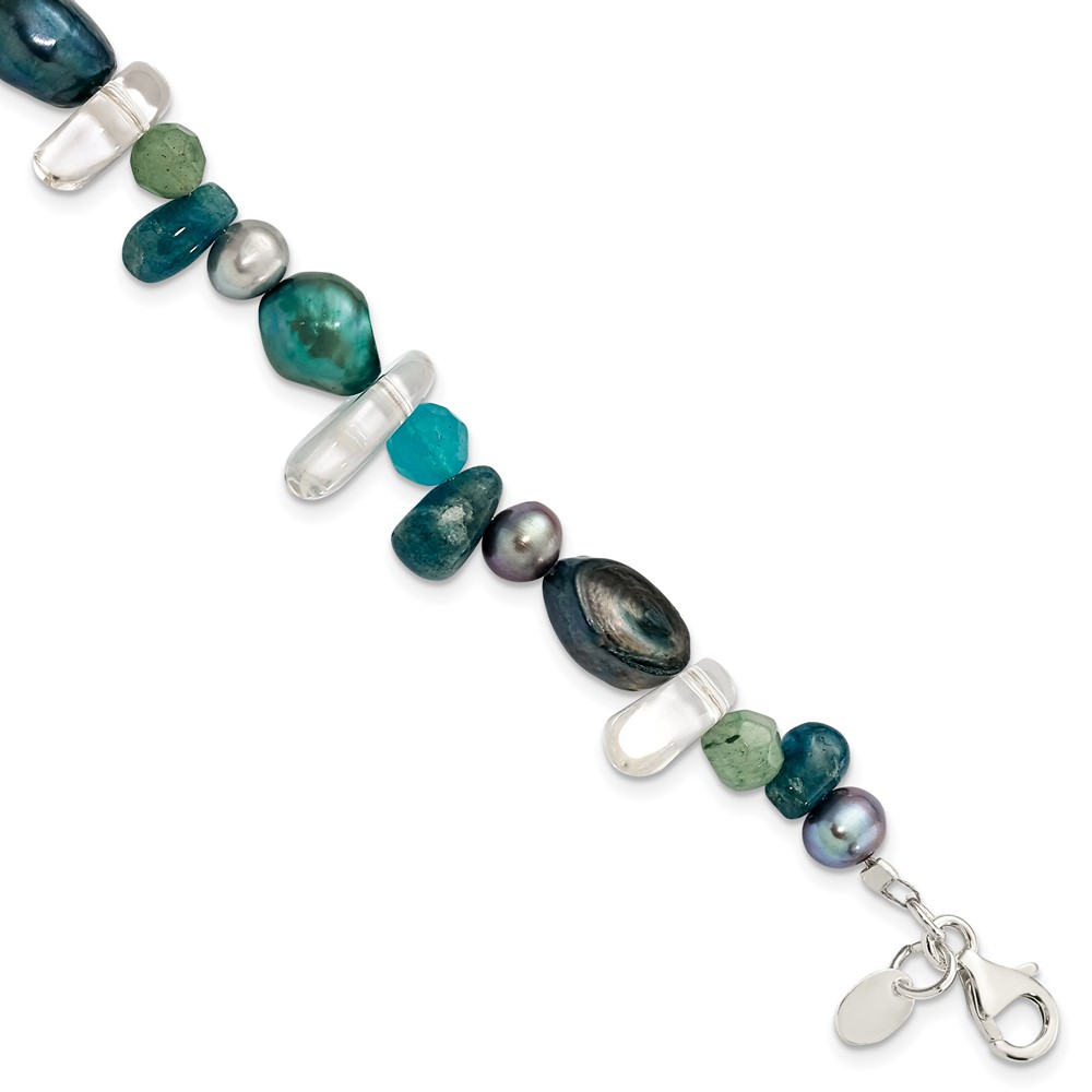 Sterling Silver Aventurine, Synthetic Blue Quartz/FWC Pearl Bracelet