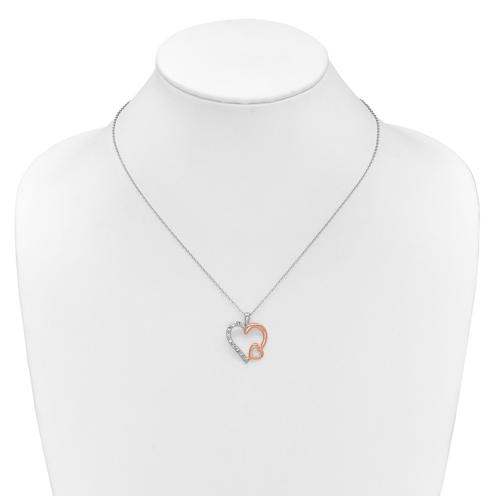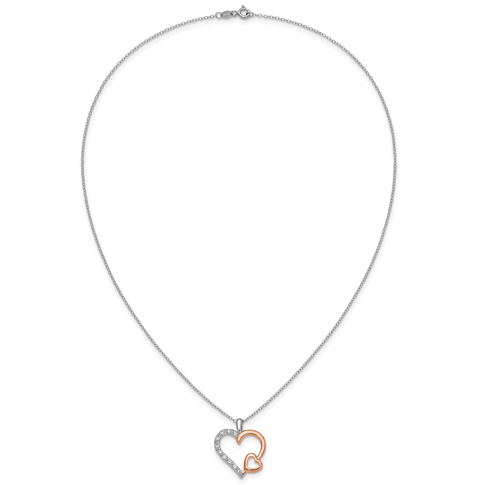 Sterling Silver and Rose Gold plated White Sapphire Heart Necklace 18"