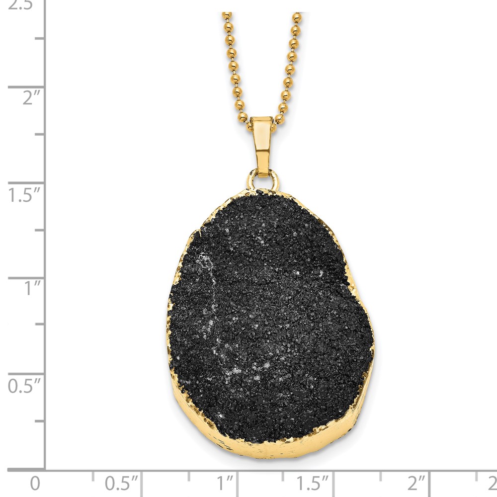 Sterling Silver Gold-tone Black Druzy 30in Necklace