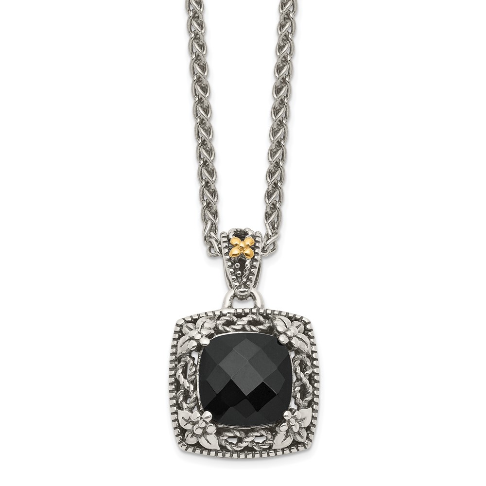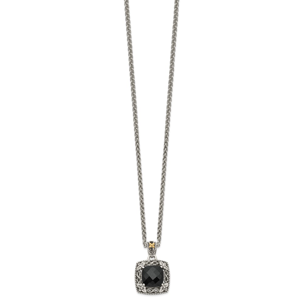 Shey Couture Sterling Silver with 14K Accent 18 Inch Antiqued Checkerboard-cut Black Onyx Necklace