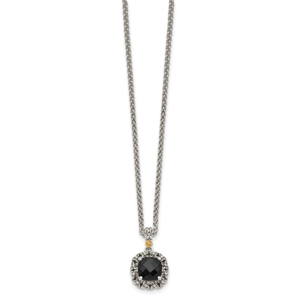 Shey Couture Sterling Silver with 14K Accent 18 Inch Antiqued Checkerboard-cut Black Onyx Necklace