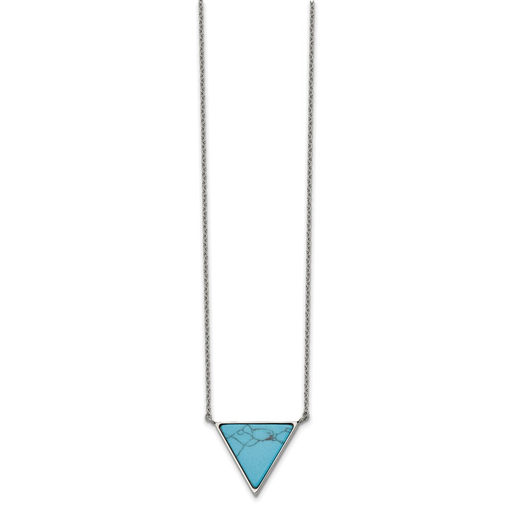 Chisel Stainless Steel Polished Reconstructed Howlite Triangle on an 18 inch Cable Chain Plus a 2 inch Extension Necklace
