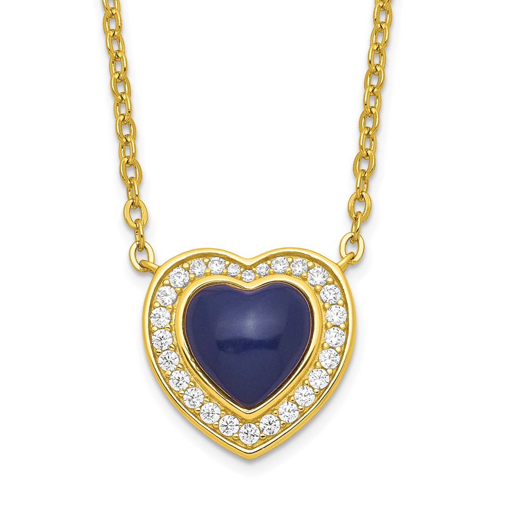 Sterling Silver Gold-tone CZ & Created Lapis Lazuli Heart w/2in ext Necklac