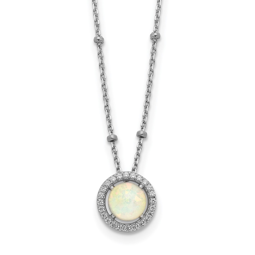 Sterling Silver RH-plated White Created Opal CZ Beaded w/2 in ext. Necklace