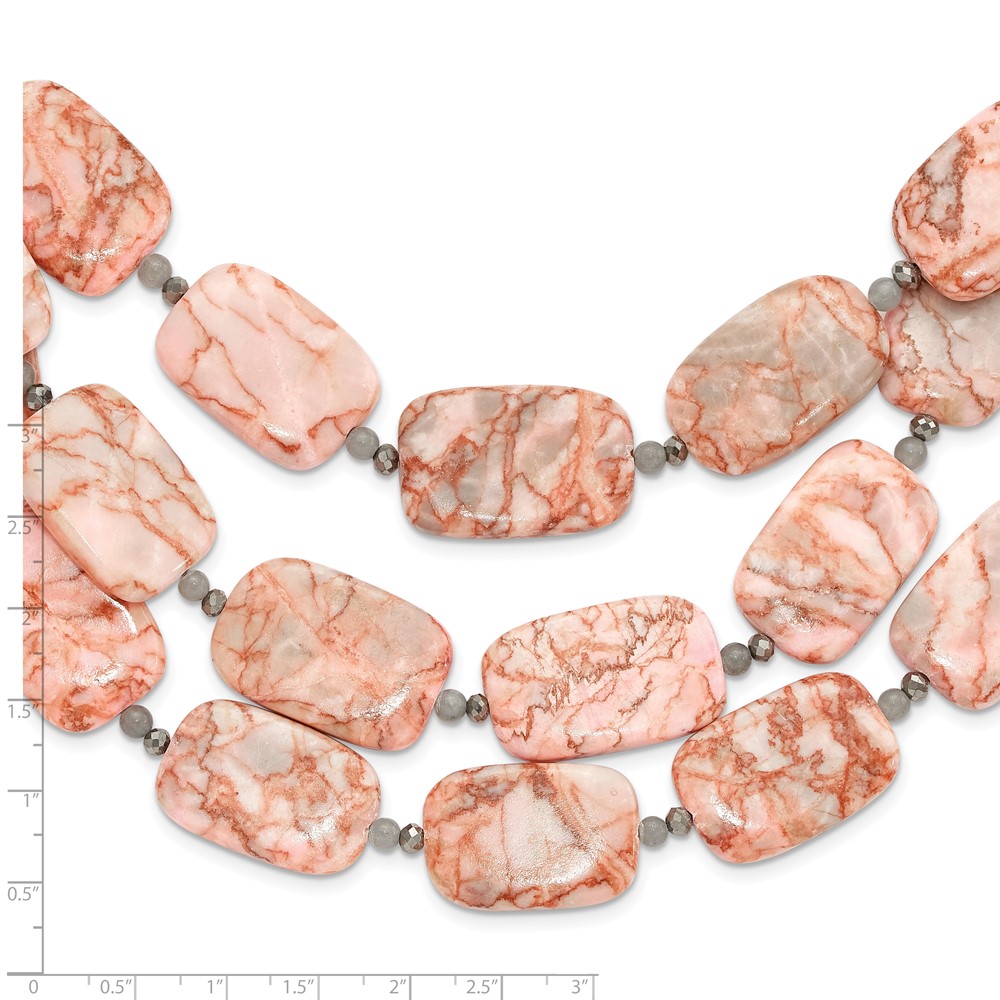 Sterling Silver Jasper, Quartz and Crystal 3 Strand 2in ext Necklace