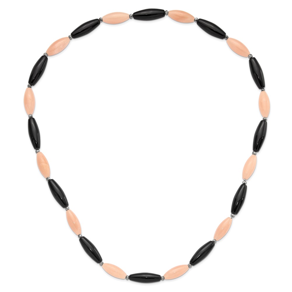 Shey Couture Sterling Silver with 14K Accent 18 Inch Antiqued Checkerboard-cut Black Onyx Necklace