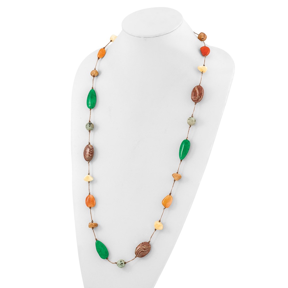 Sterling Silver Multi Stone Metallic Yarn 35in Necklace