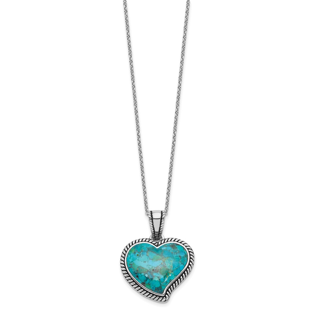Sterling Silver RH-pl Oxidized Compressed Turquoise w/1.75in ext Necklace