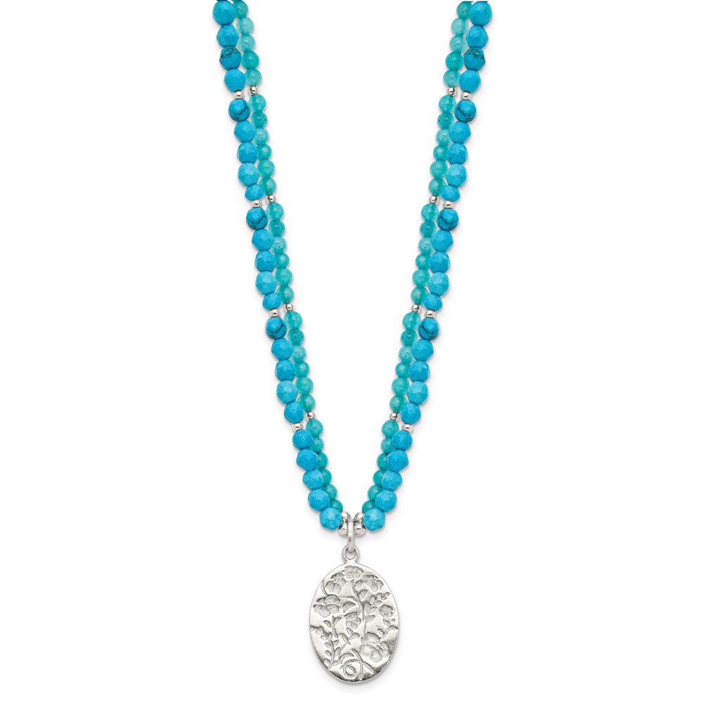 Sterling Silver Recon Magnesite, Indicolite Quartz 2in ext Necklace