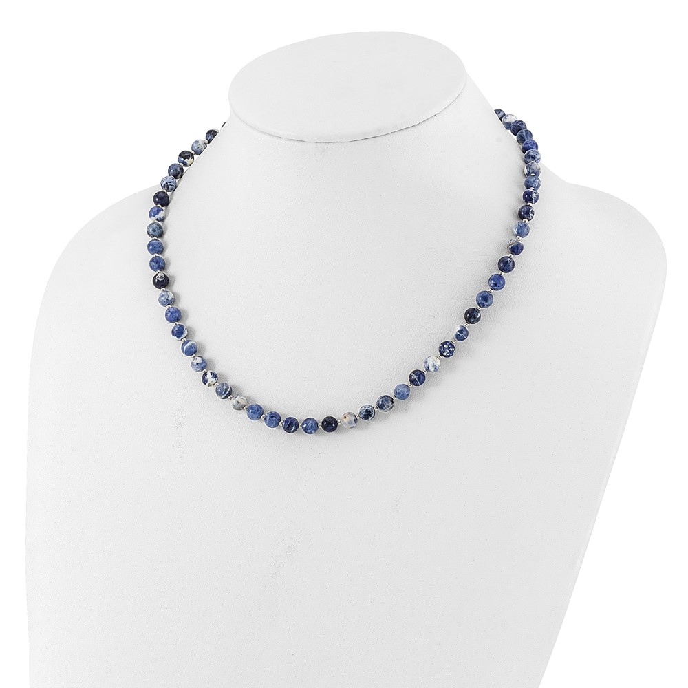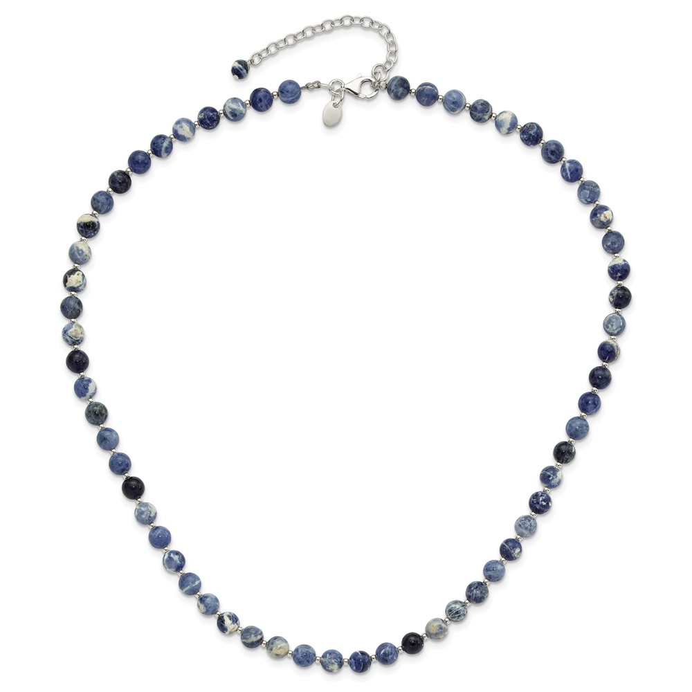 Sterling Silver Blue Sodalite Beaded 19in w/2in ext Necklace