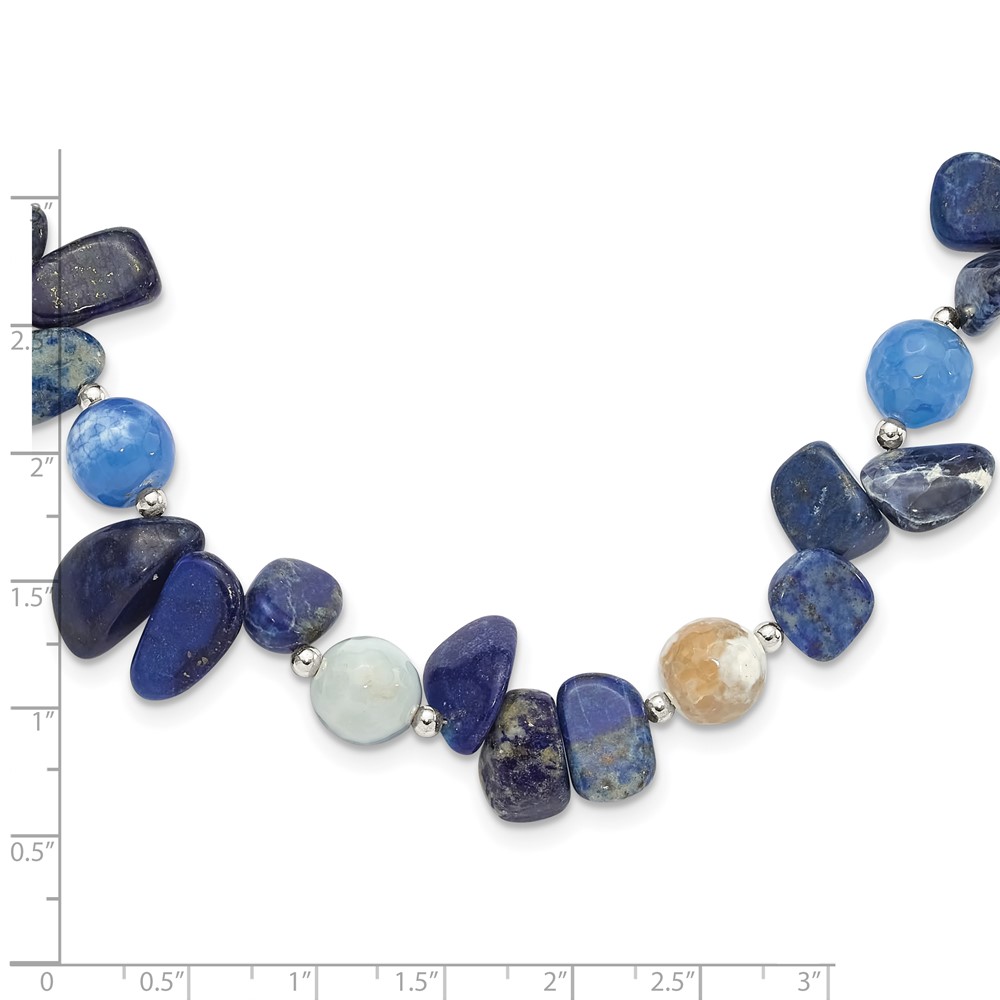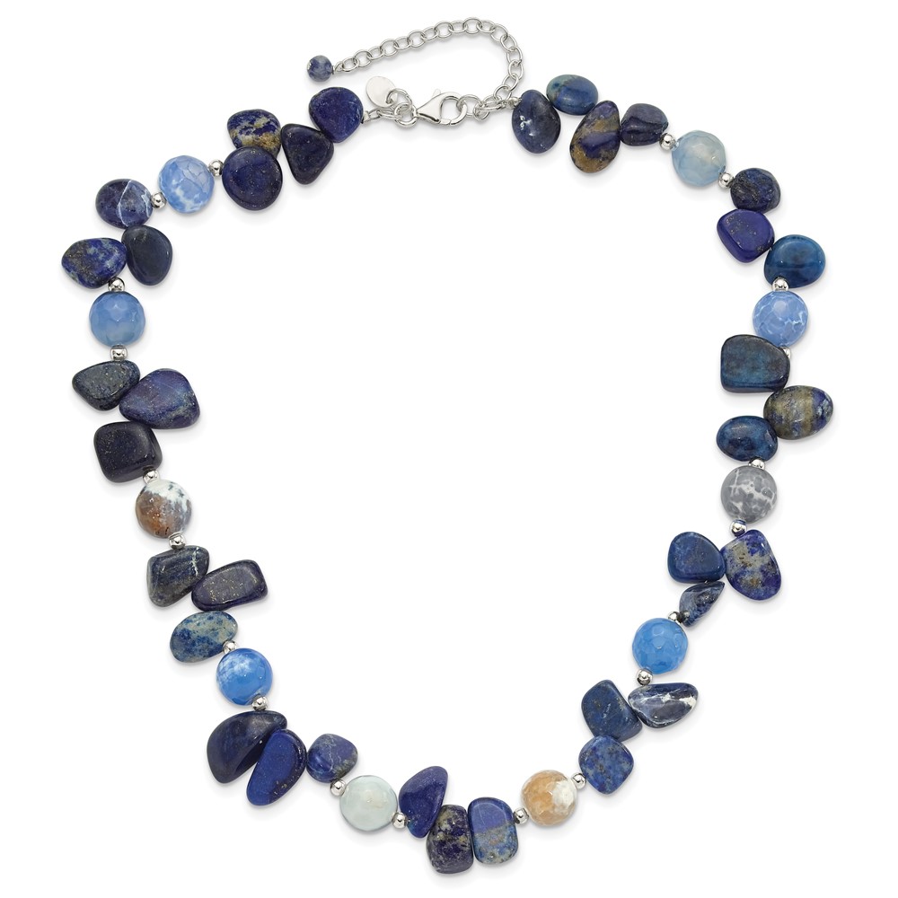 Sterling Silver Agate w/Shell, Lapis and Sodalite w/2in ext Necklace