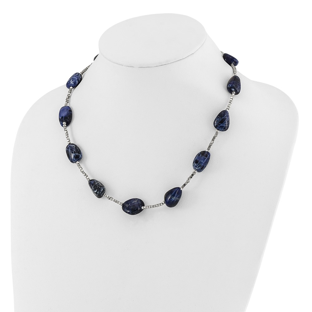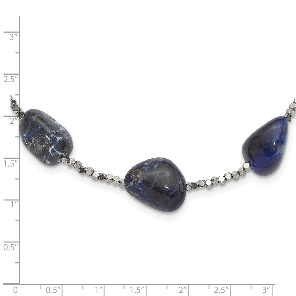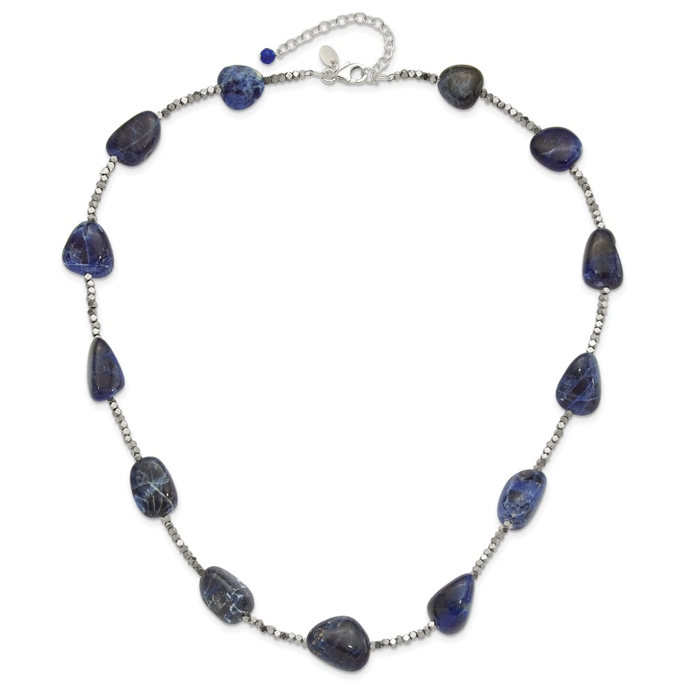 Sterling Silver Blue Quartz, Sodalite and Hematite 2in ext Necklace