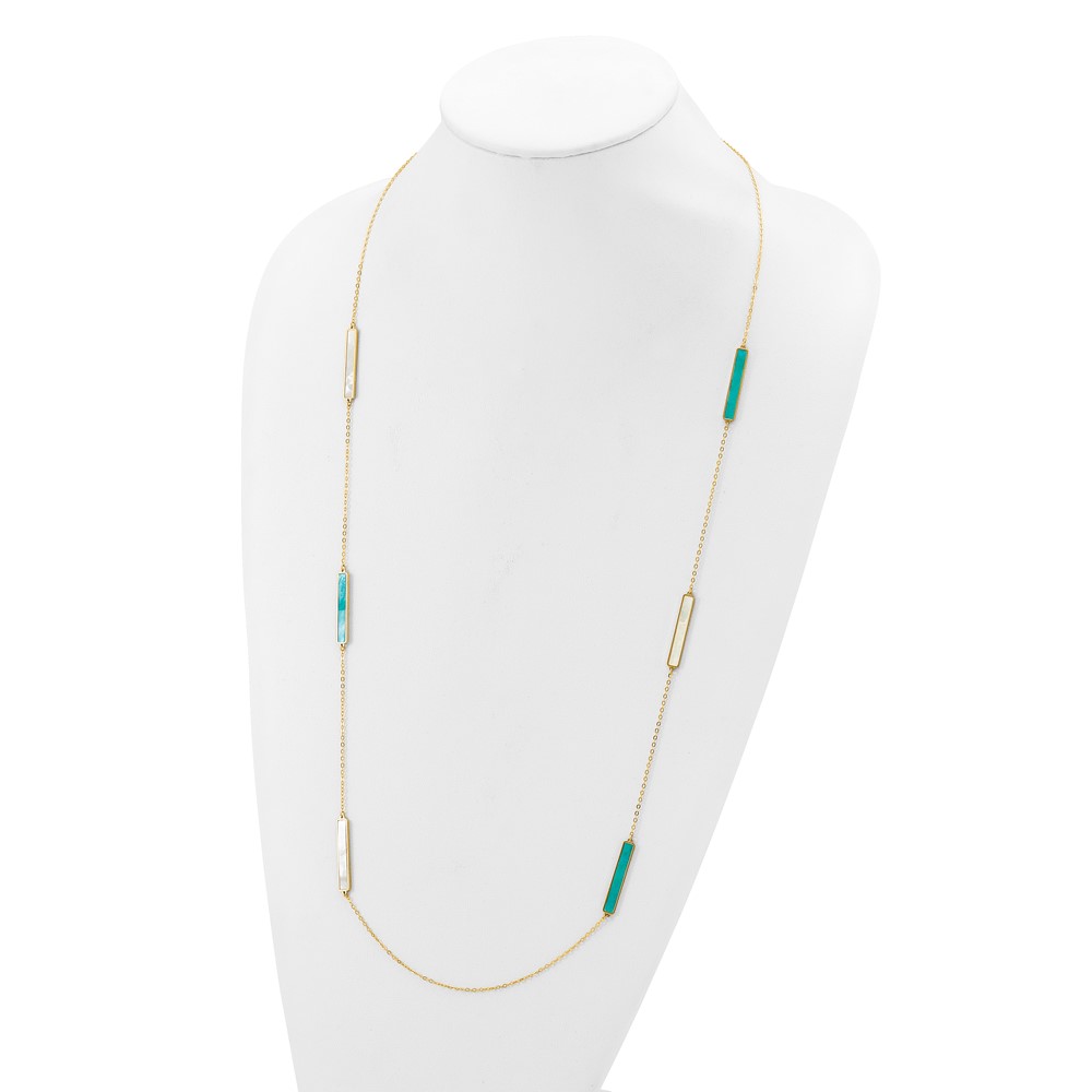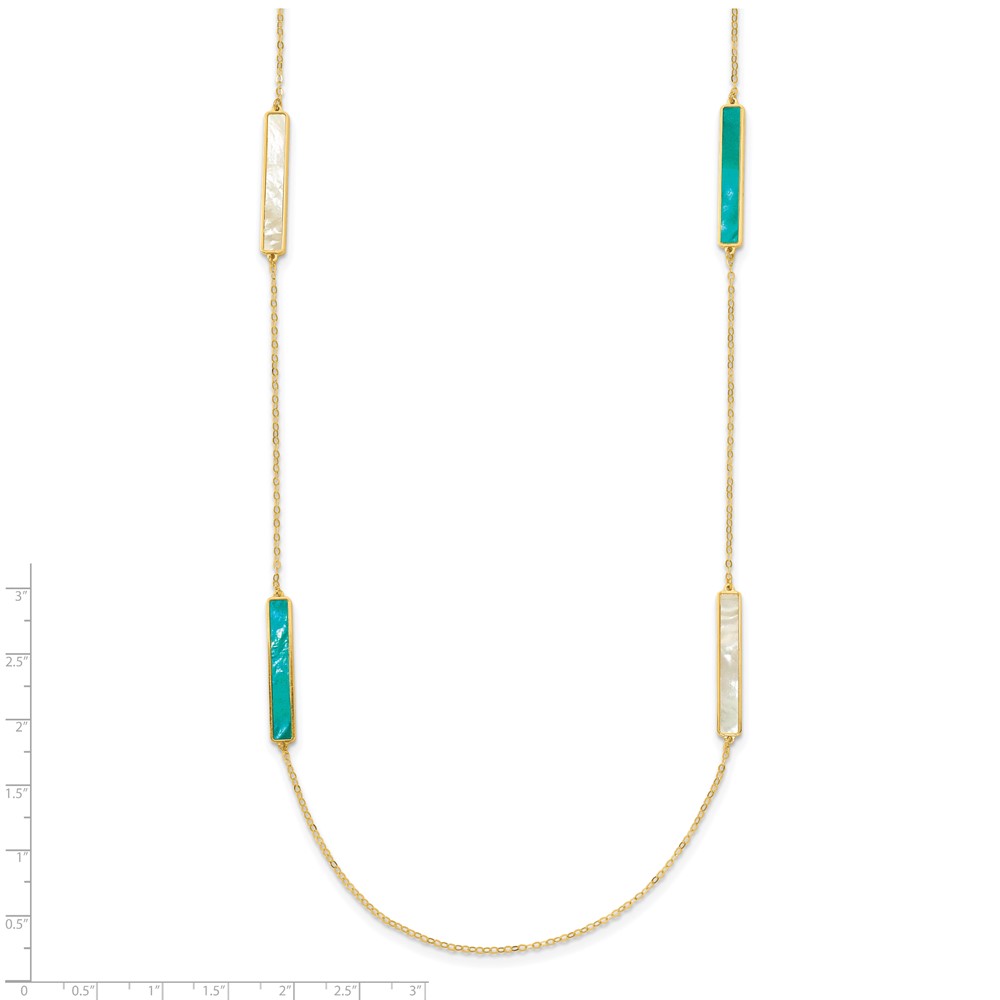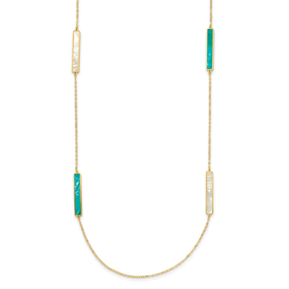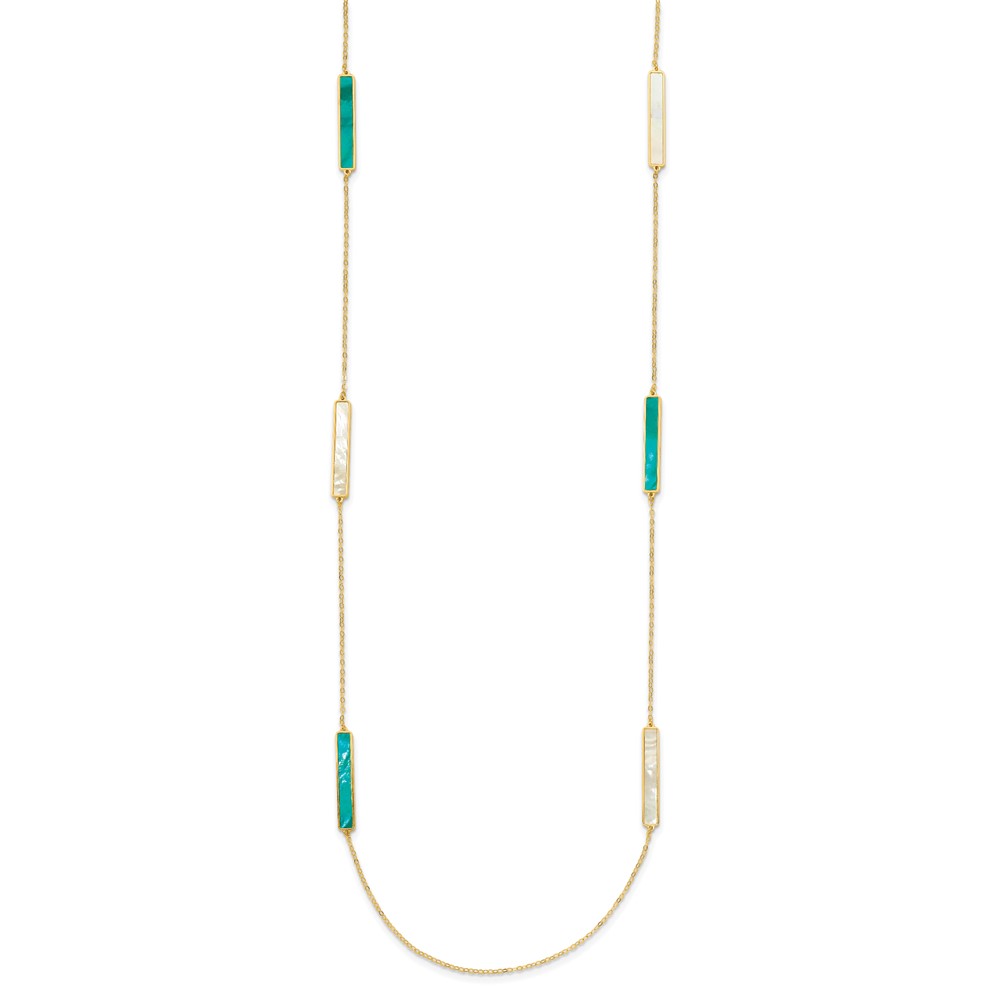 Herco 14K Polished Teal/White Mother of Pearl Reversible 30mm Bar 34 Inch Necklace