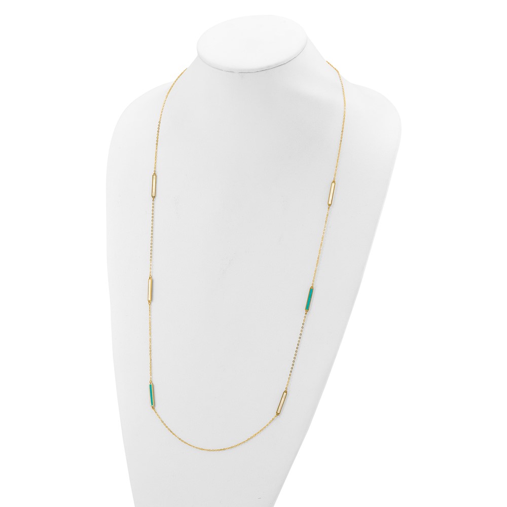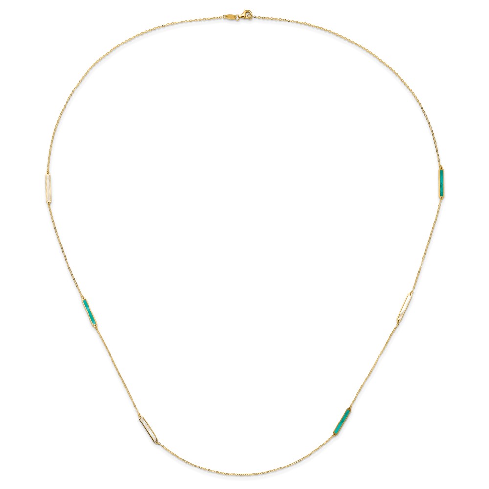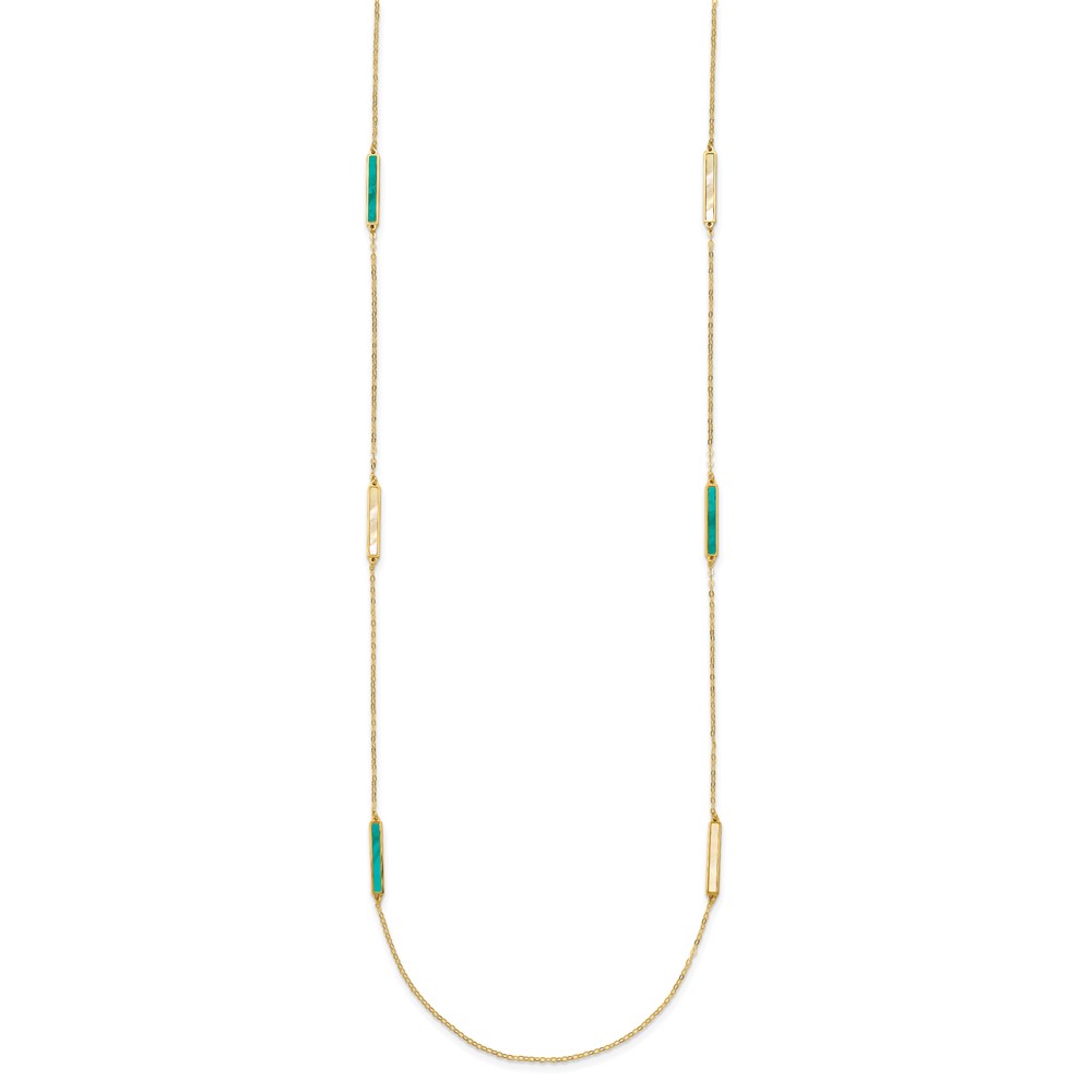 Herco 14K Polished Teal/White Mother of Pearl Reversible 20mm Bar 34 Inch Necklace