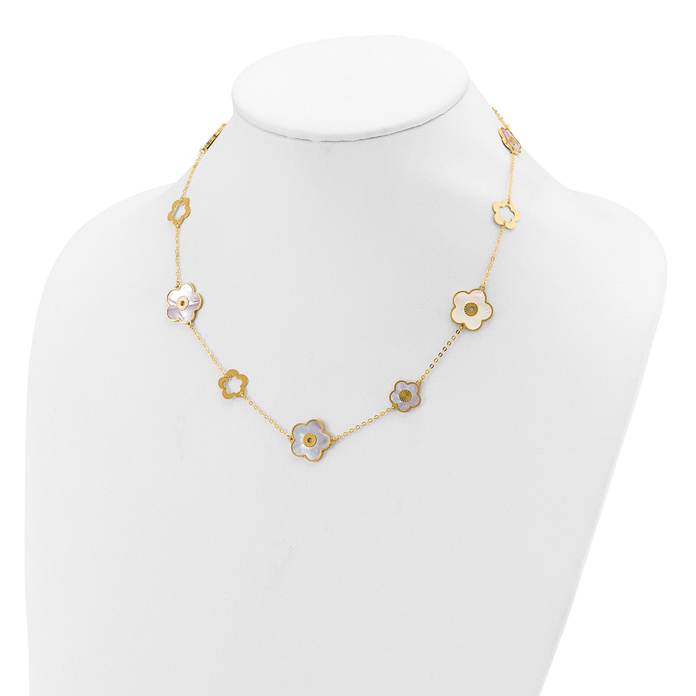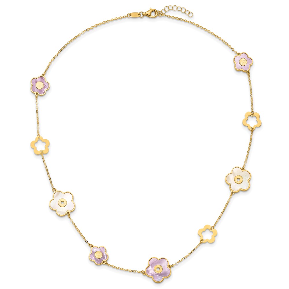 Herco 14K Polished Fancy Mother of Pearl Triple Teardrop 16.5 Inch with 2 Inch Extension Necklace