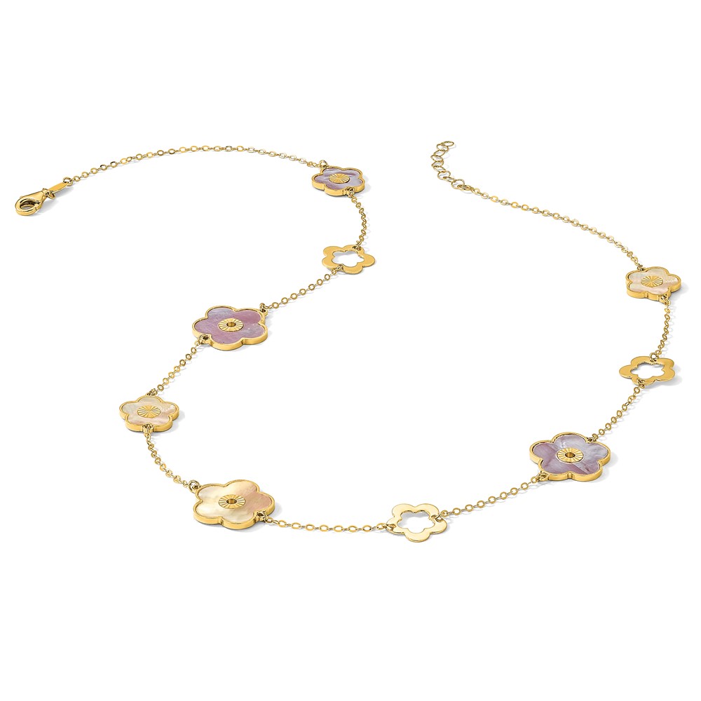 HERCO Gold Burgundy & White Mother of Pearl Flower Necklaces