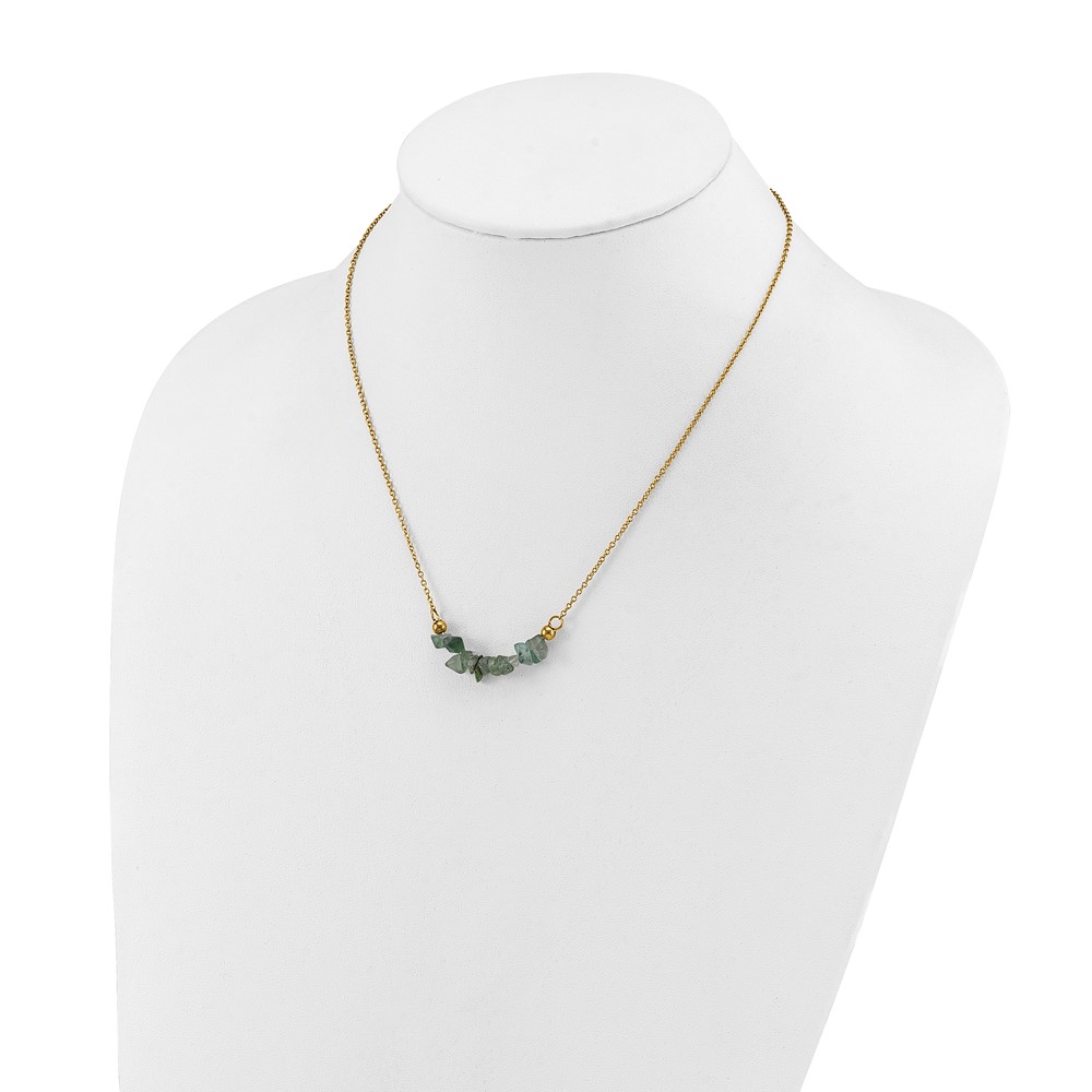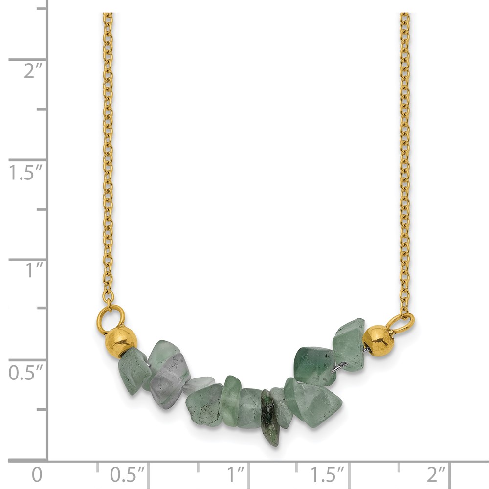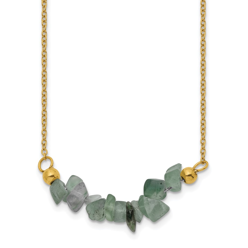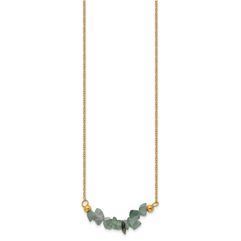 Chisel Stainless Steel Polished Yellow IP-plated Green Jade on a 15 inch Plus a 2.75 inch Extension Cable Chain Necklace