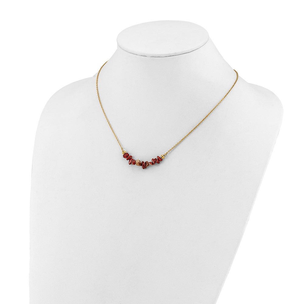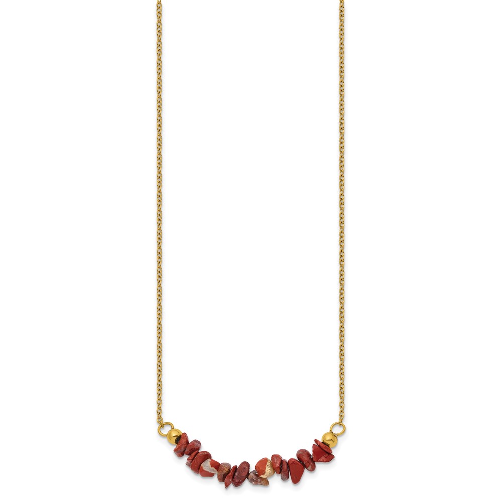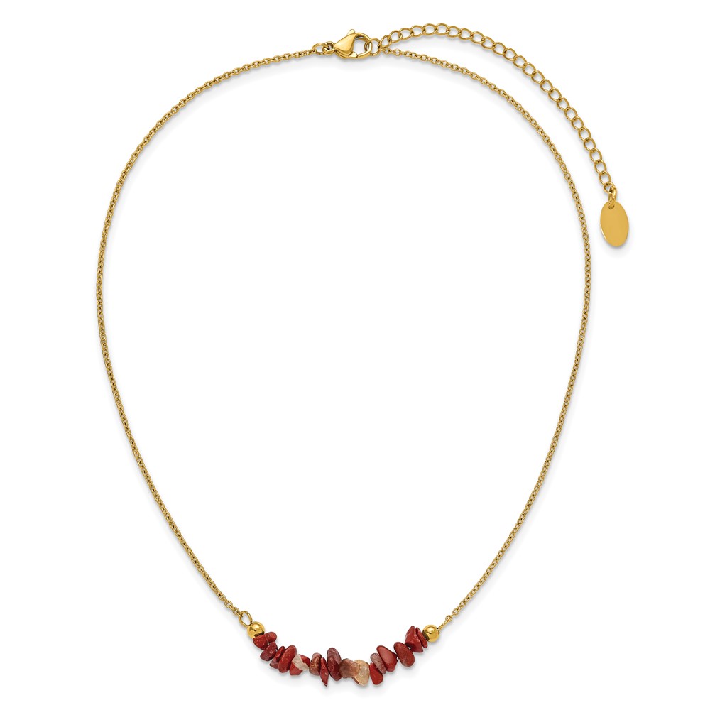 Chisel Stainless Steel Polished Yellow IP-plated Red Jade on a 15 inch Plus a 2.75 inch Extension Cable Chain Necklace