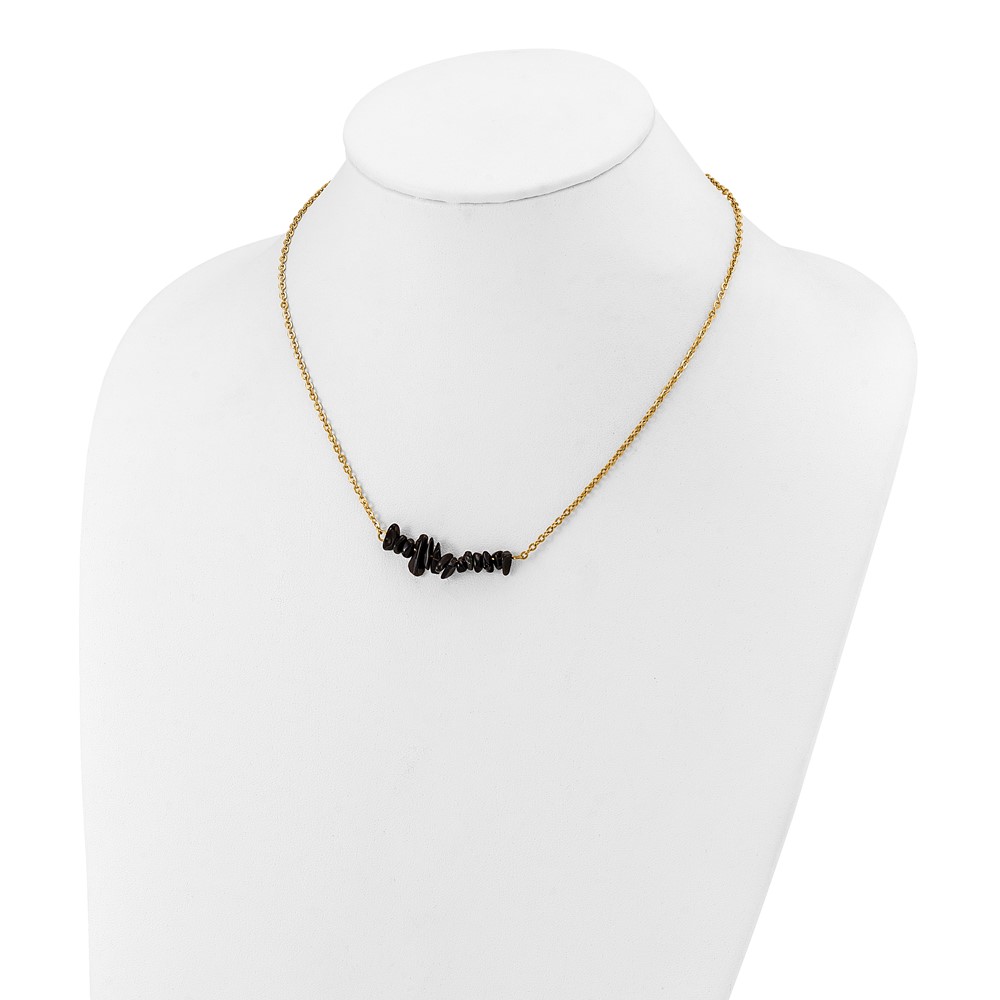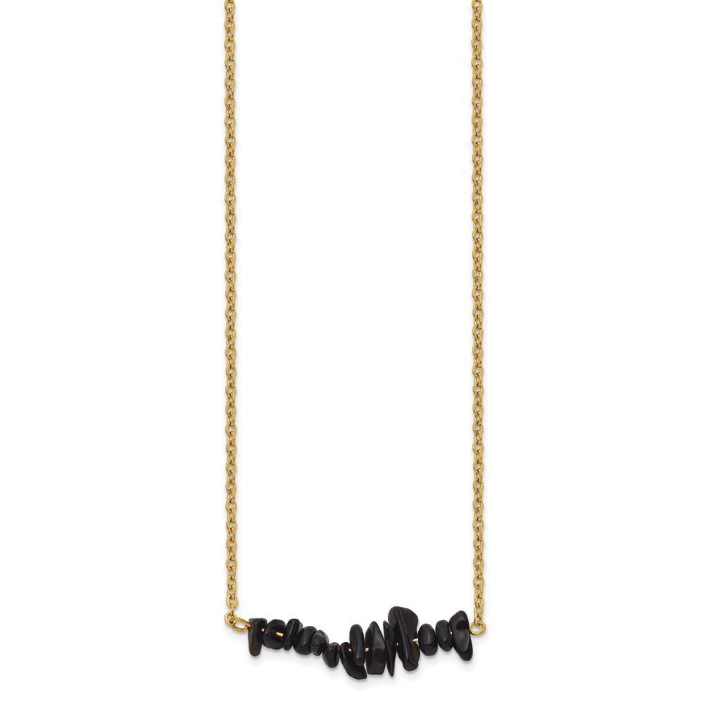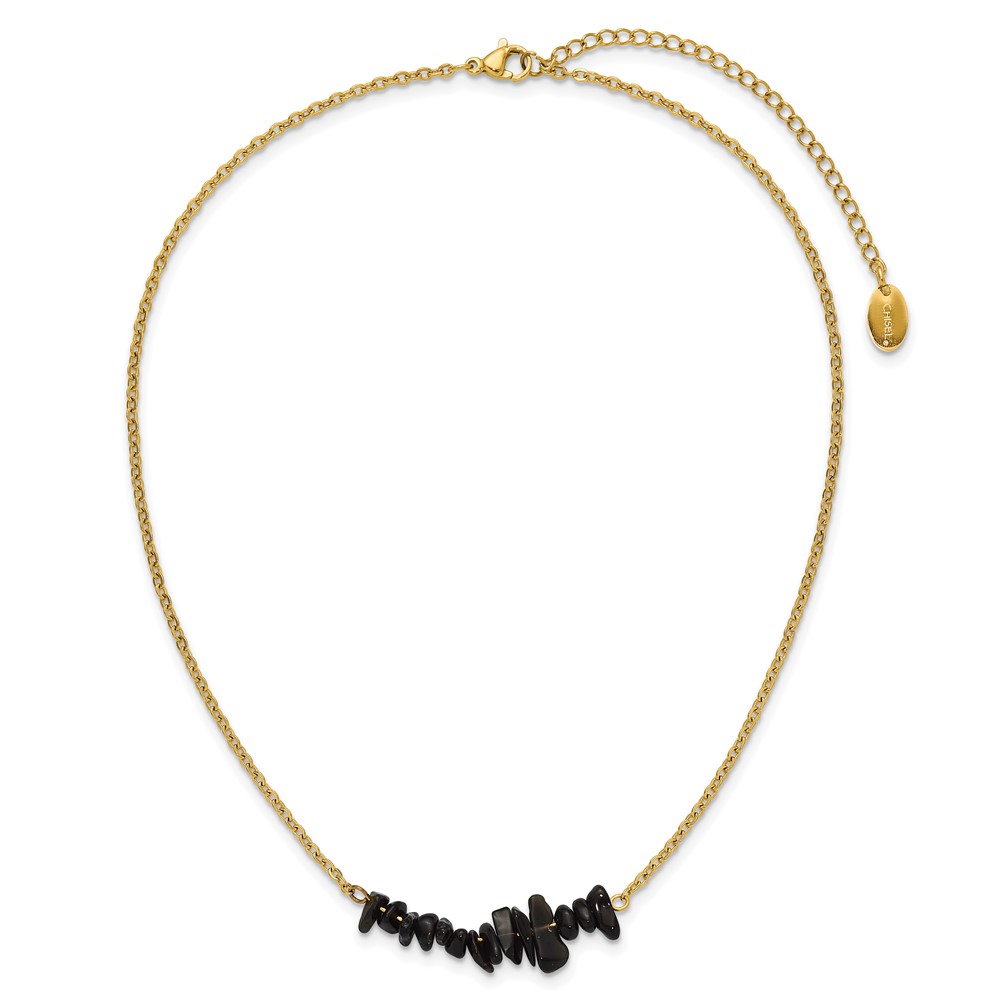 Chisel Stainless Steel Polished Yellow IP-plated Black Agate on a 15 inch Plus a 2.75 inch Extension Cable Chain Necklace