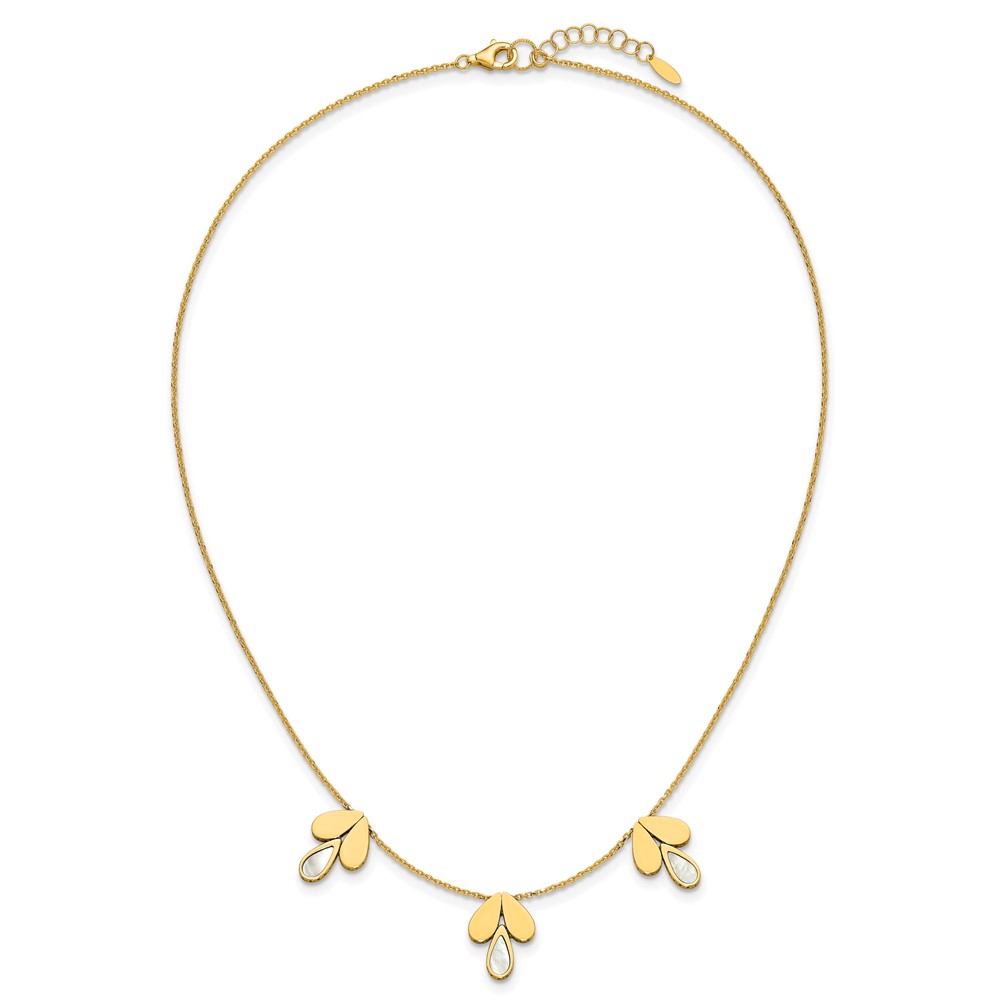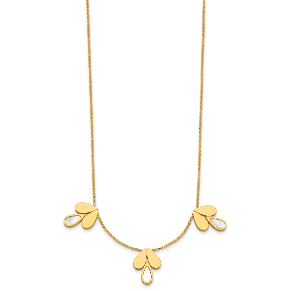 Herco 14K Polished Fancy Mother of Pearl Triple Teardrop 16.5 Inch with 2 Inch Extension Necklace