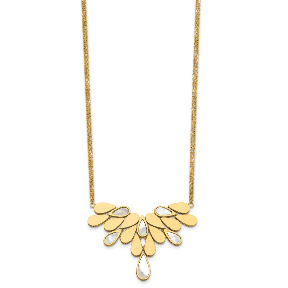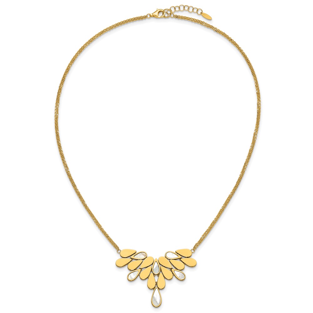 Herco 14K Polished Fancy 2-Strand Mother of Pearl Teardrops 16.5 Inch with 2 Inch Extension Necklace