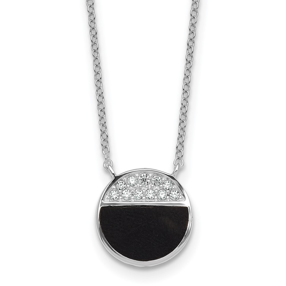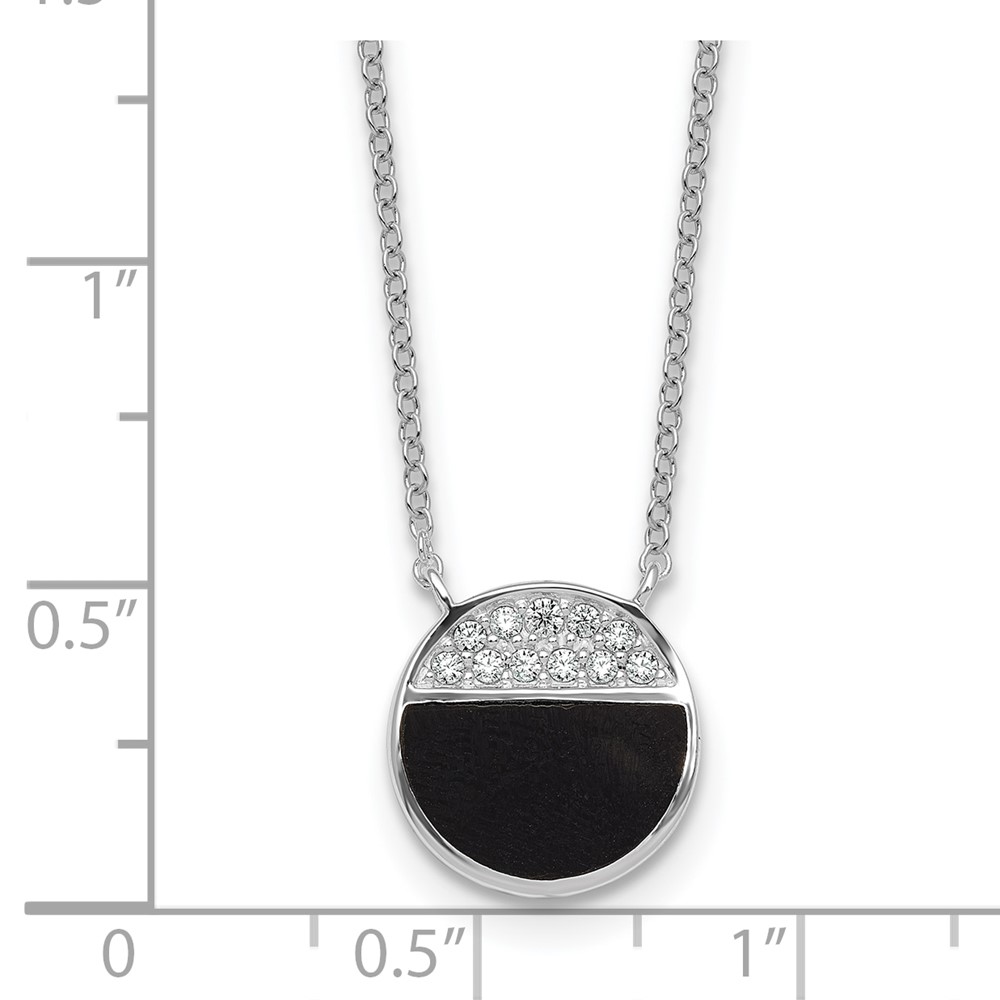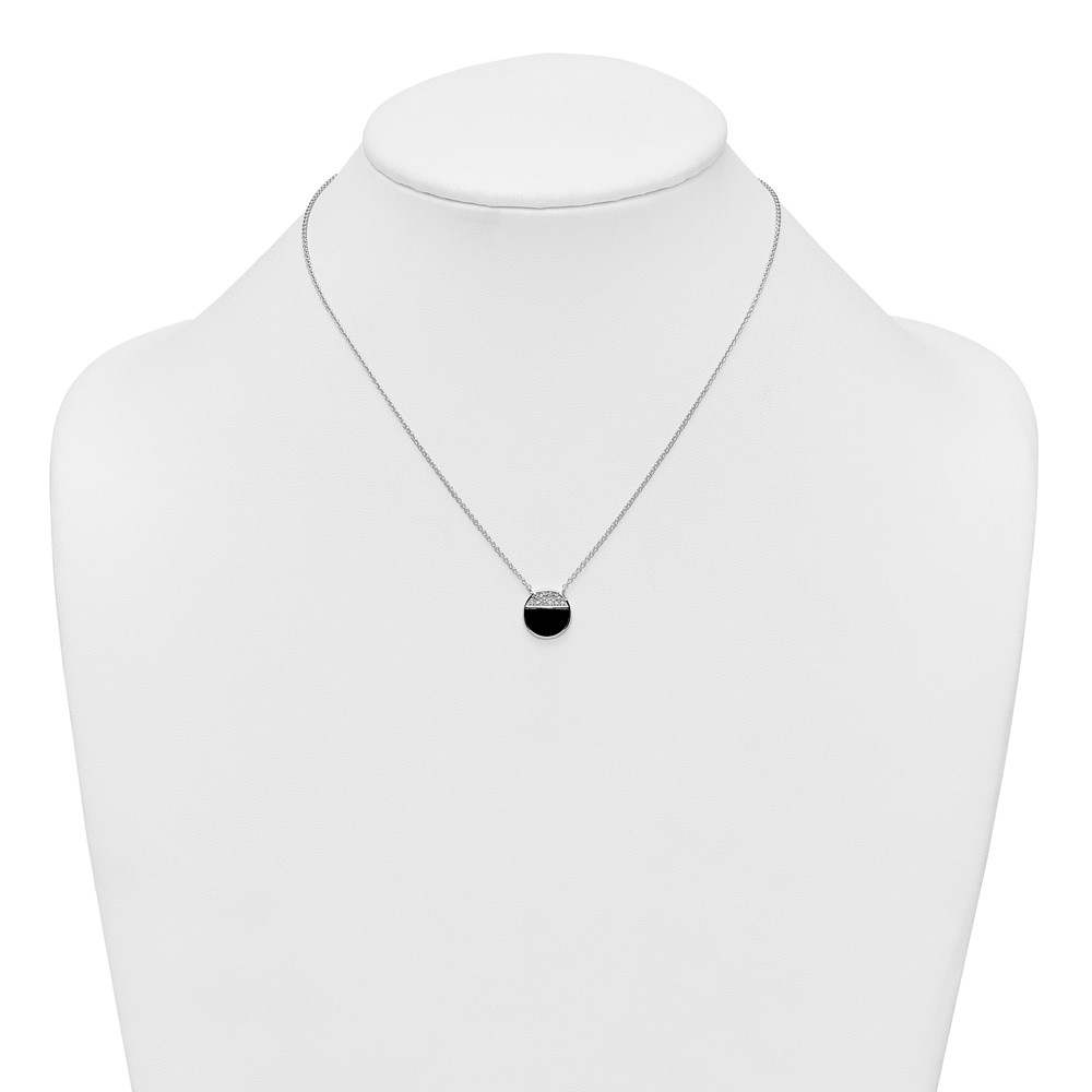Sterling Silver Rhodium-plated Polished Black Onyx and CZ Circle 16 inch with 2 inch Extender Necklace