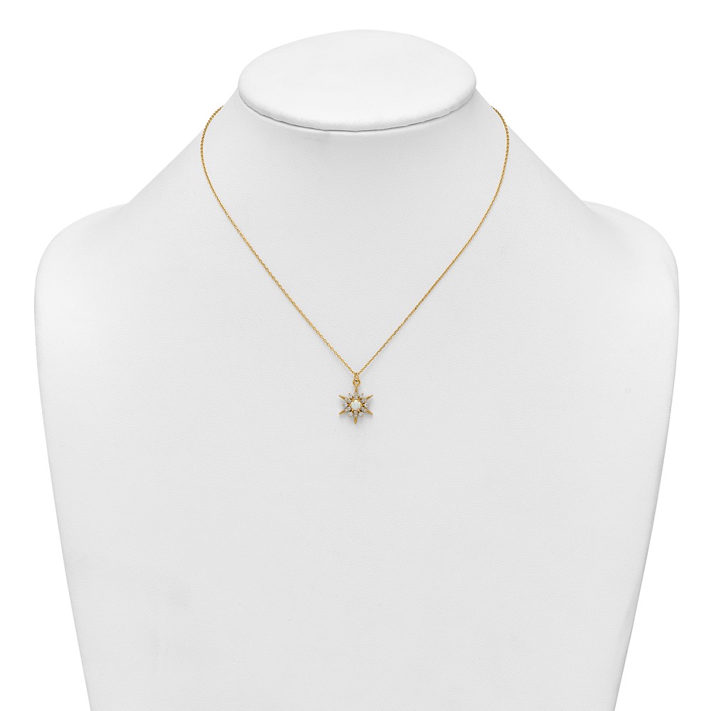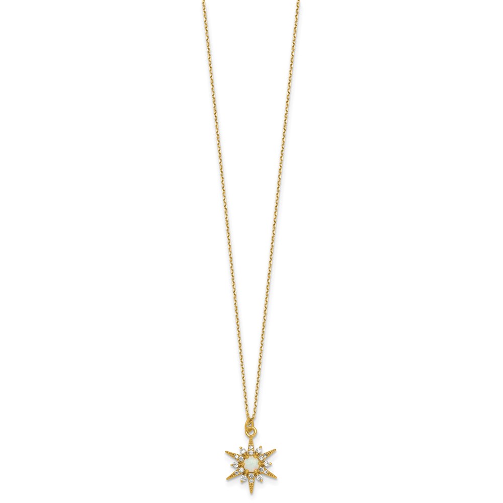 Sterling Silver Gold-Tone Polished Lab Created Opal and CZ Starburst 16 Inch with 2 Inch Extension Necklace