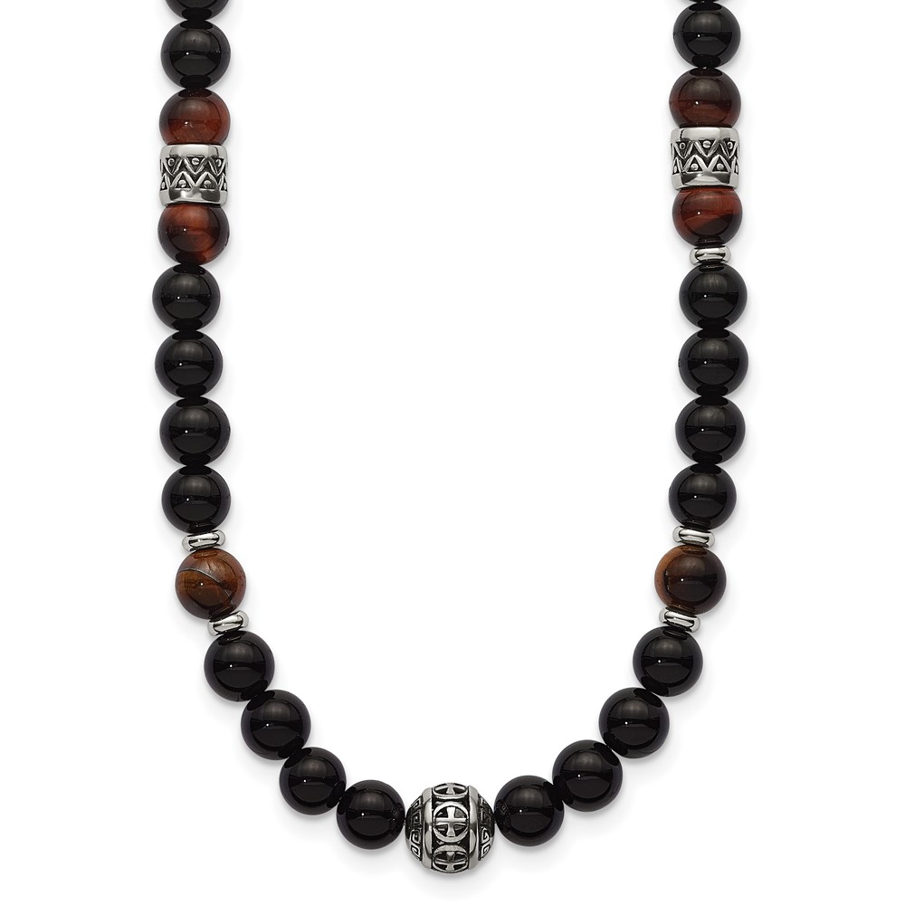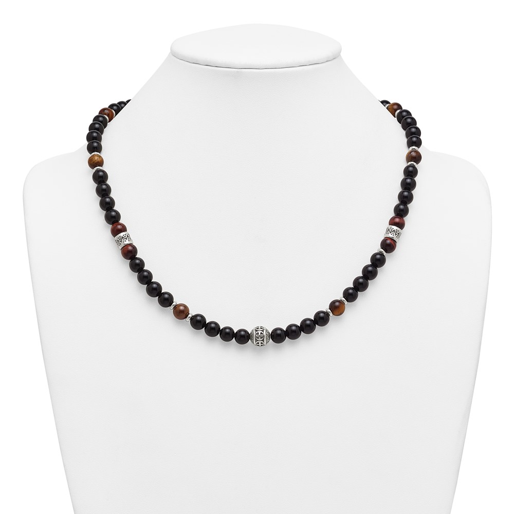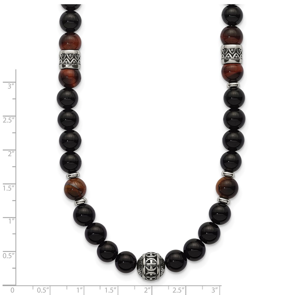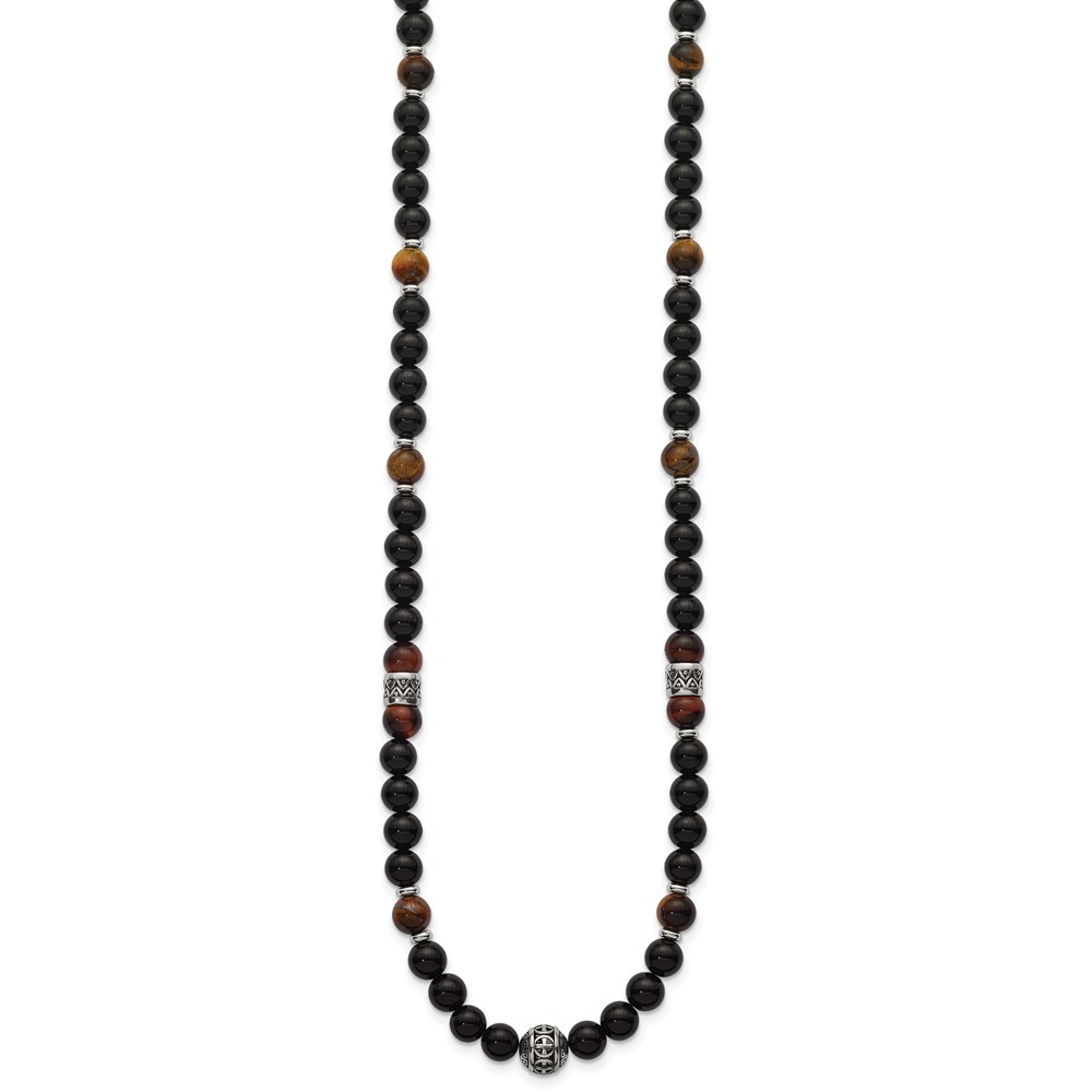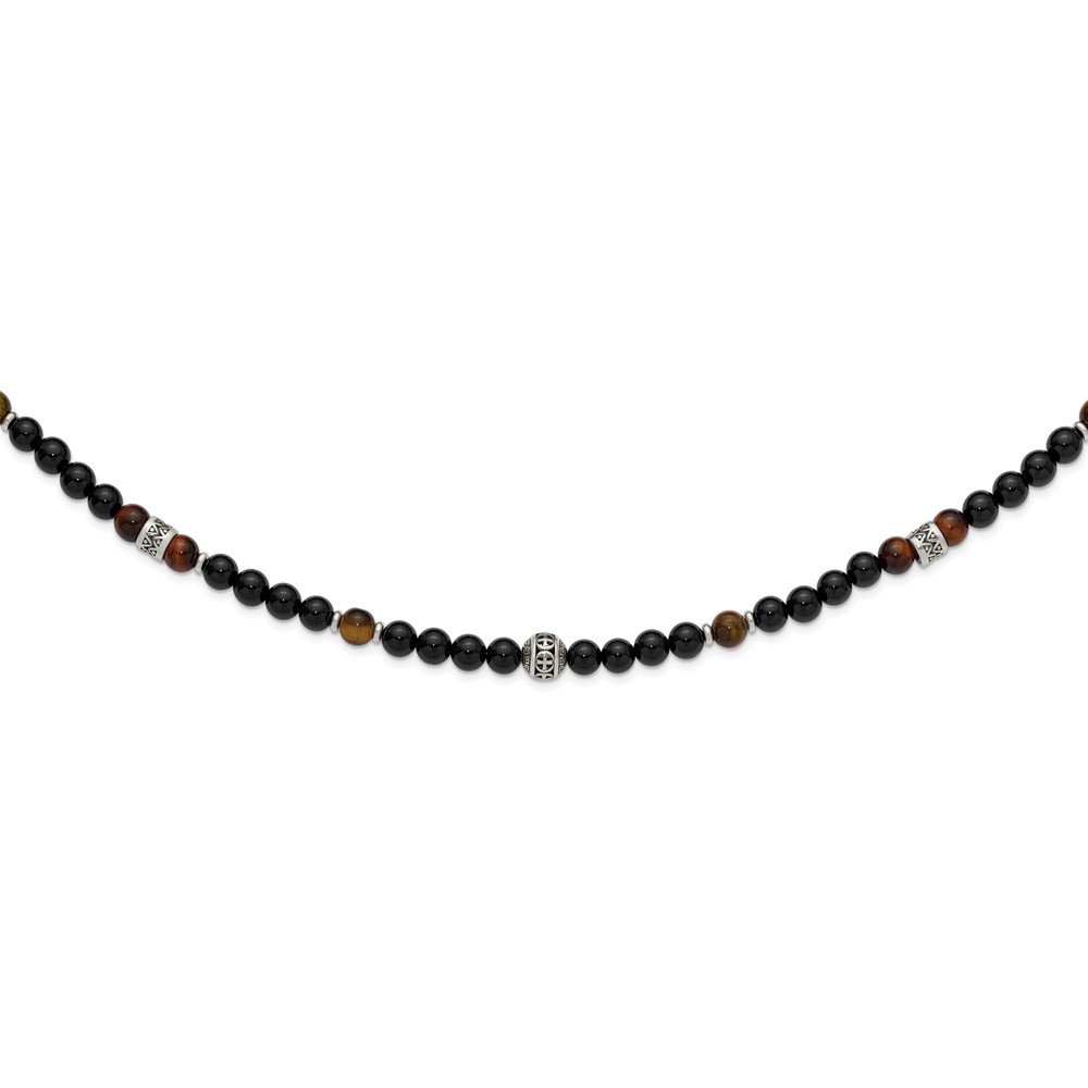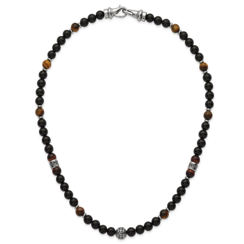 Stainless Steel Polished Tiger's Eye and Black Onyx 22in Necklace
