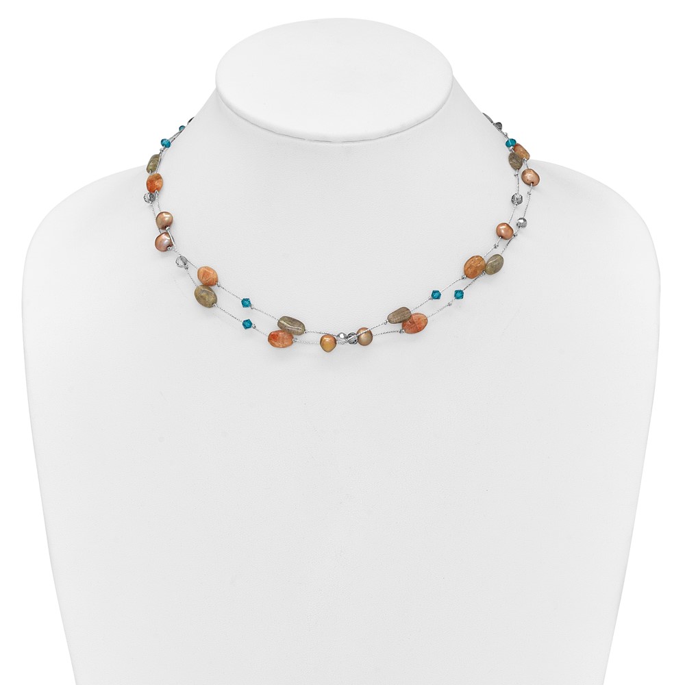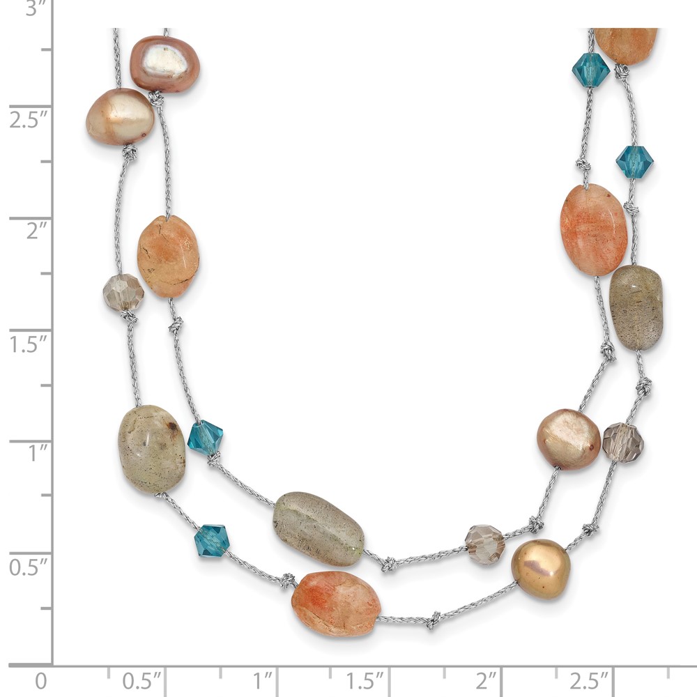 Labradorite/Red Moonstone/FW Cultured Pearl/Crystal Necklace
