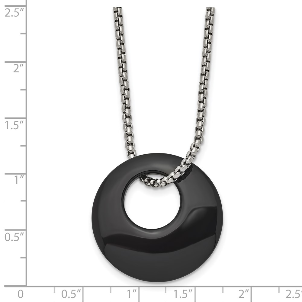 Chisel Stainless Steel Polished Black Onyx Circle Pendant on an 18 inch Box Chain Necklace
