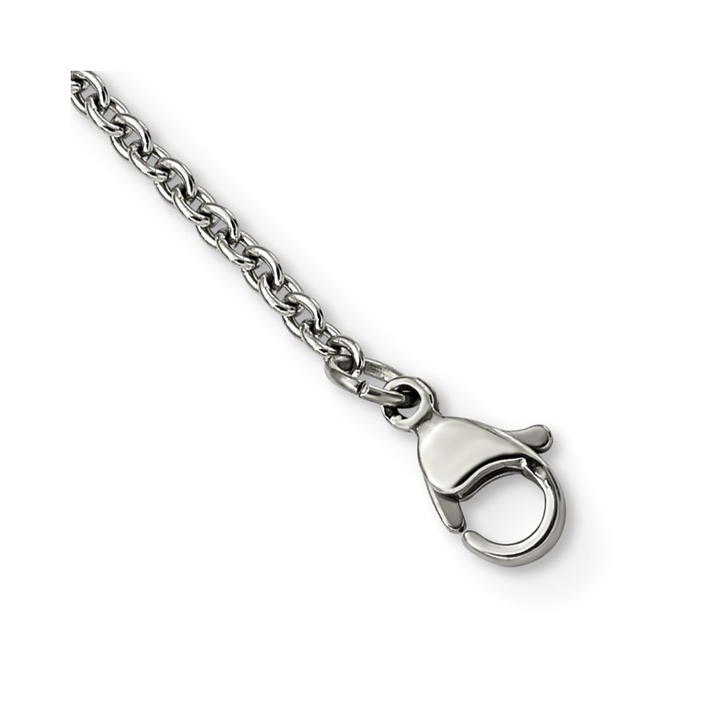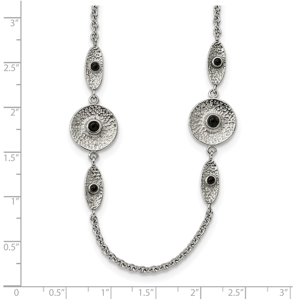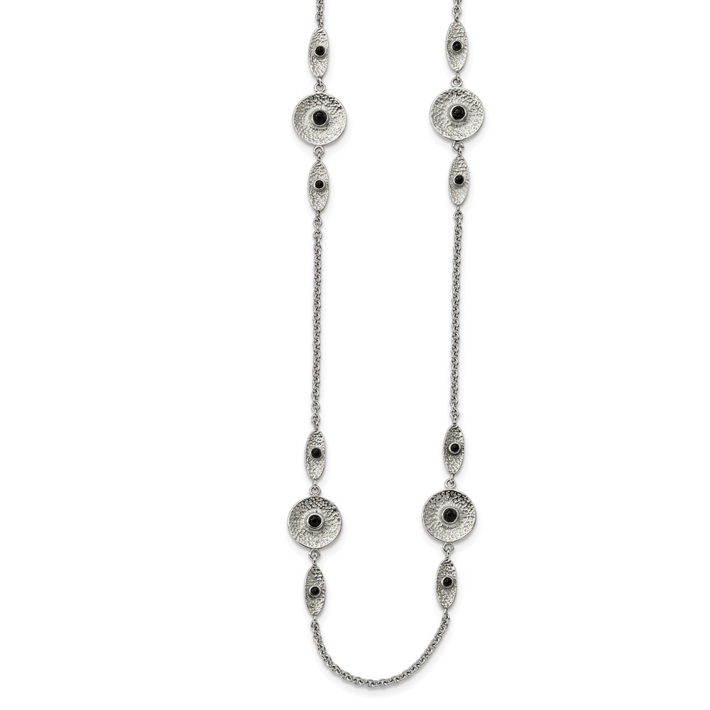 Stainless Steel Polished and Textured Black Onyx 34in w/2in ext Necklace