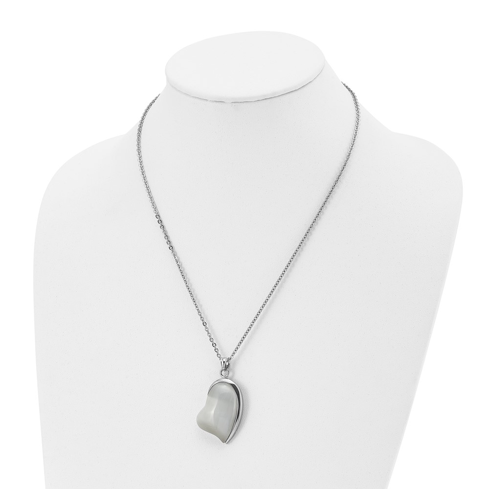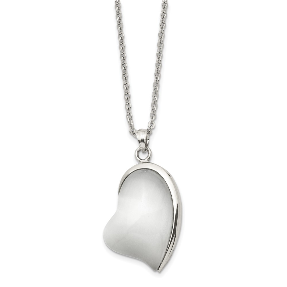 Stainless Steel Polished White Cat's Eye Heart 20in Necklace