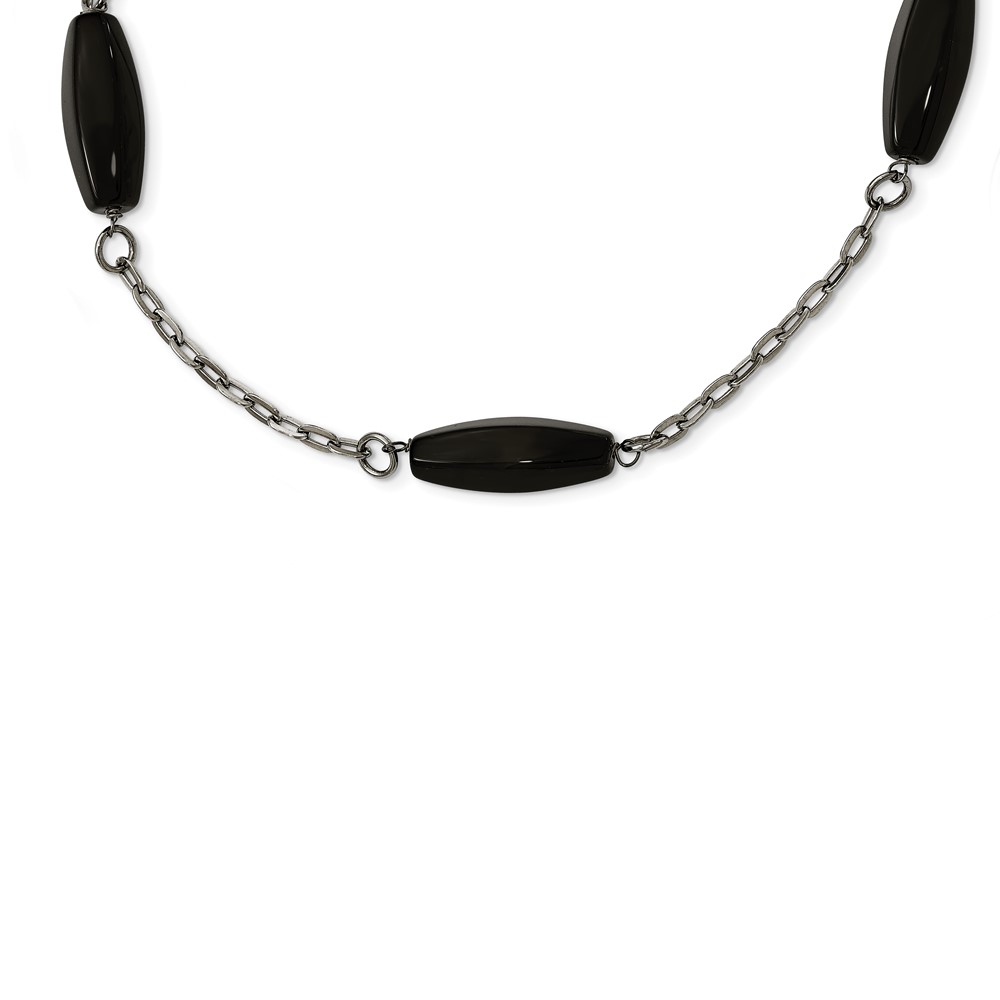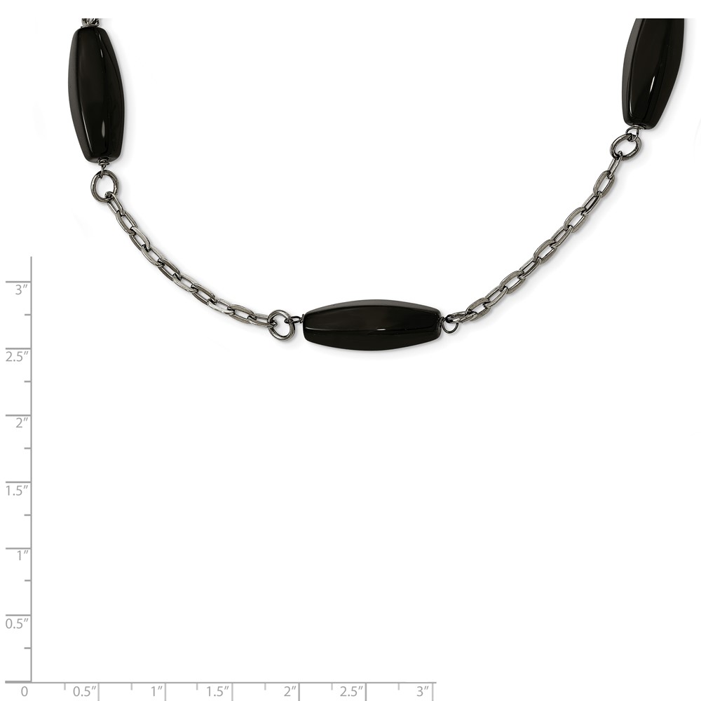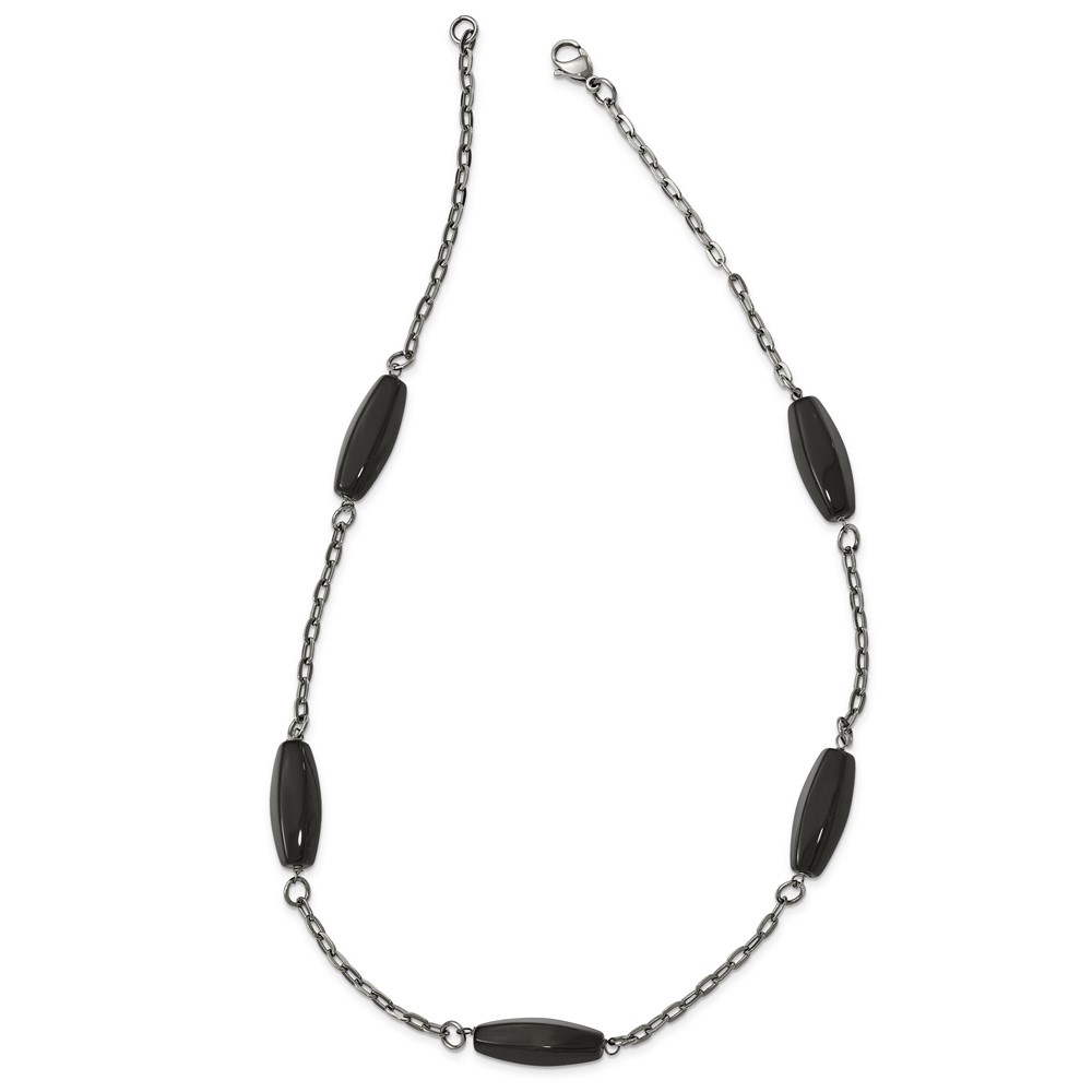 Stainless Steel Polished Circles & Teardrop Onyx w/2in ext. Necklace