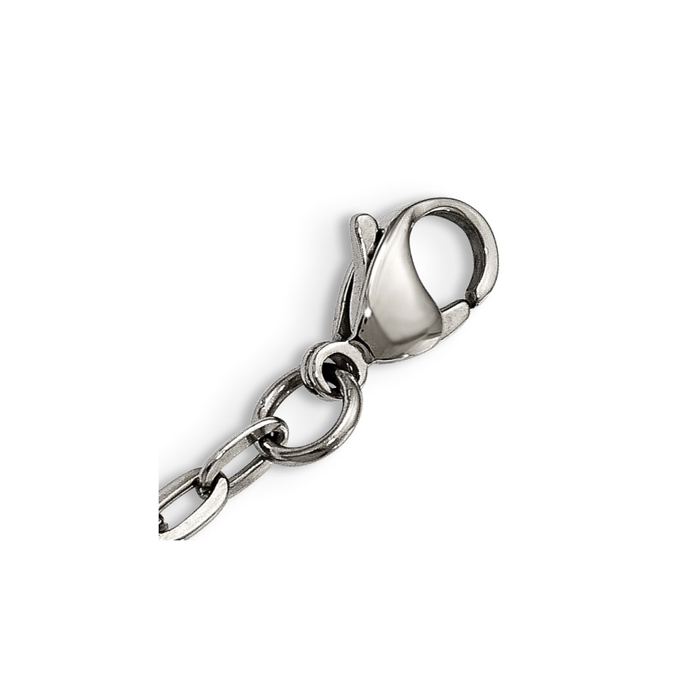 Chisel Stainless Steel Antiqued and Polished with White Cat's Eye Feather Pendant on a 24 inch Box Chain Necklace