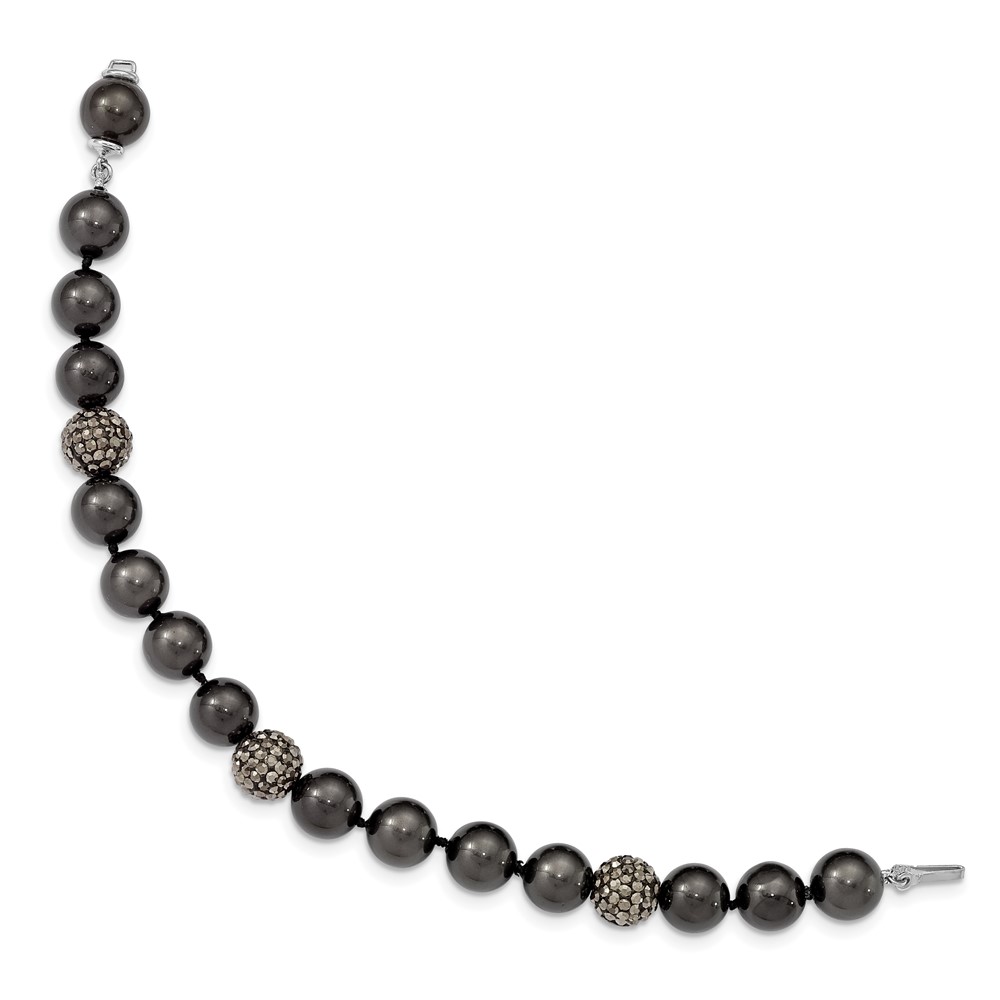 Sterling Silver Majestik Rhod-plated 10-11mm Blk Shell Crystal Bracelet